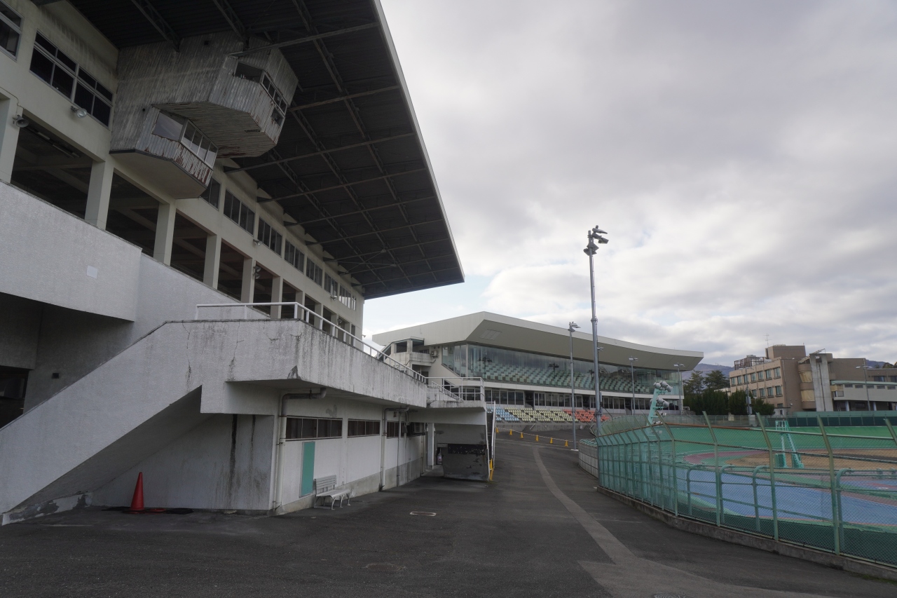 京都向日町競輪場は、近くを通ったので寄ってみました。駐車場とか敷地はとても広いのですが、観客席に相当するスタジアム建物とかも含めて、けっこう古びてボロボロな感じ。それなりに名前は知られていると思いますが、なんだかなあというところでした。
