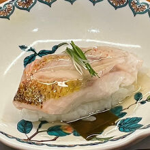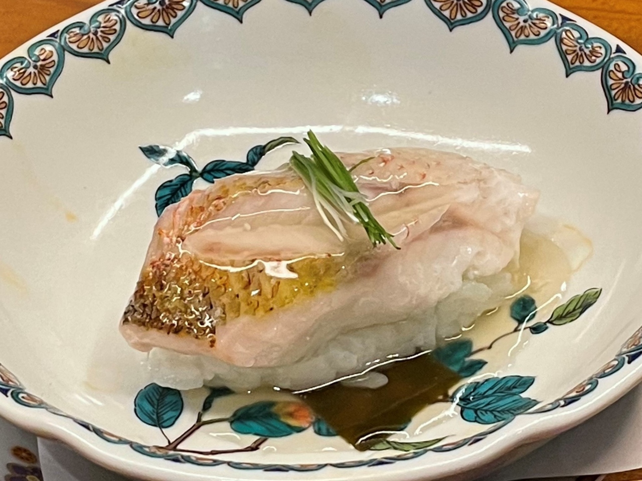 のどぐろ蒸し寿司は脂がとろけます、のどぐろの旨みがシャリまでいきわたり絶品。