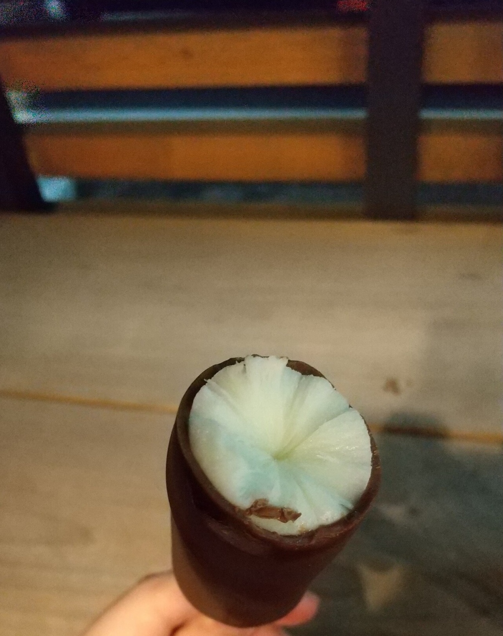 液状のチョコレートの中に冷えてるアイスをダイブさせると、