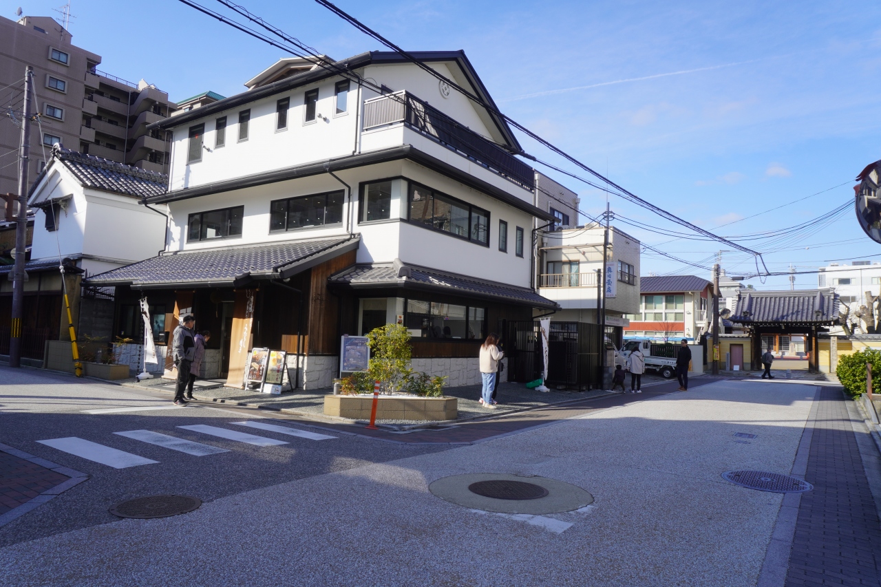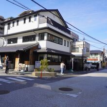 伏水 菓蔵 本店は、東本願寺 伏見別院の門前すぐ。白壁の三階建ての建物の堂々とした構えのお店です。看板にもありますが、みたらしだんごがイチオシで、伏見らしく純米大吟醸酒を隠し味に使っているというもの。酒饅頭なんかも人気です。
