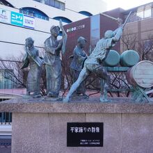 平家踊りの群像は、下関駅のペデストリアンデッキ。ライオンズクラブが建てたもののようですが、平家踊りは壇之浦で敗れた平家一門の供養の盆踊りに起源があるものだとか。舞い手と太鼓の叩き手がいて、まあ、下関にはこういうものがあるということですね。