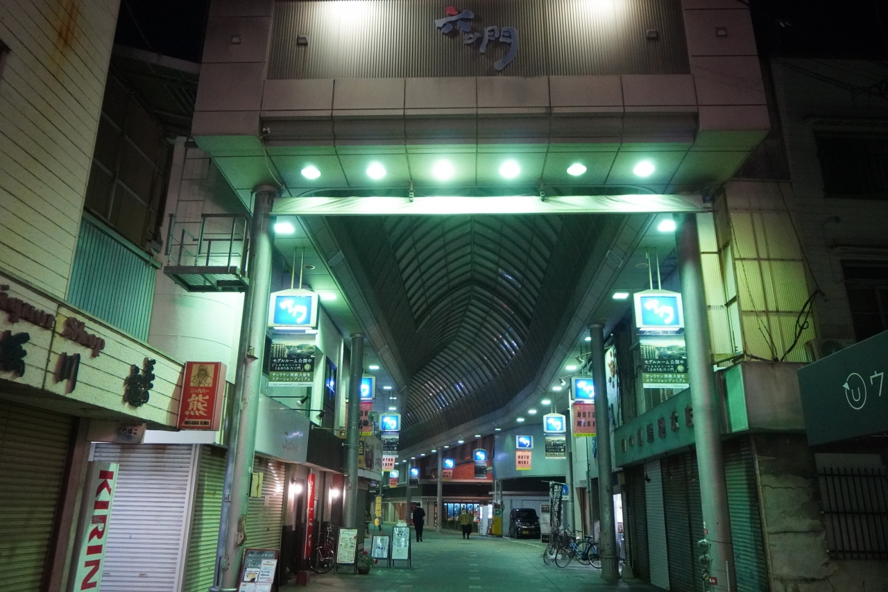 西鉄久留米駅から西に向かっては、ほとめき通り商店街。そのほとめき商店街は、六ツ門、六ツ門あけぼの、一番街、西栄通、東町明治通、ベルモール、西鉄駅前の7つの商店街で構成されています。つまり、六ツ門商店街はその一つ。一番西にあるアーケード商店街です。天井が高くて、名前も歴史を感じるものですね。