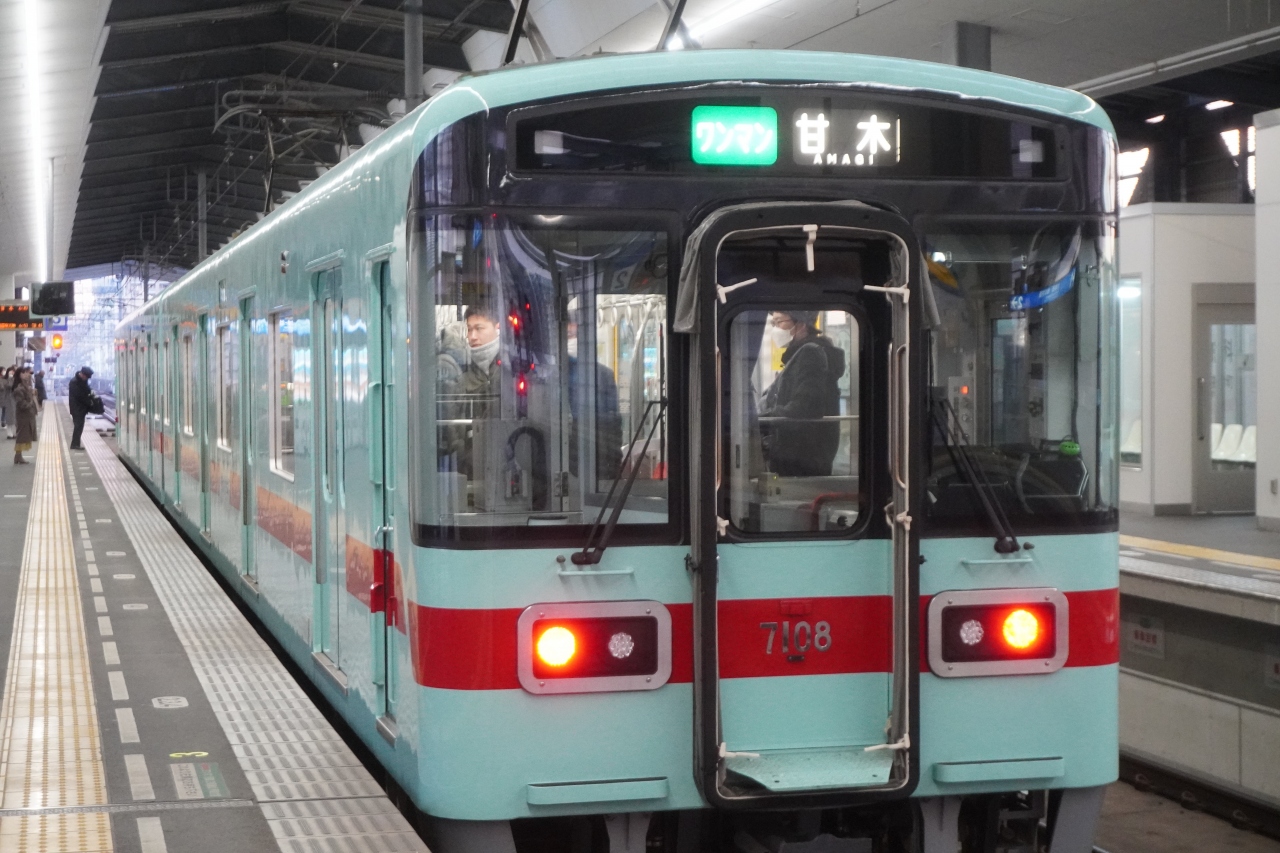 西鉄甘木線は、久留米市の宮の陣駅から甘木駅までを結ぶ17.9kmのローカル線。ちなみに、甘木は甘木がどうというよりも秋月城址への玄関口といったイメージの方が強いかな。福岡県でも、福岡市よりも黒田家の匂いが濃くていい街です。