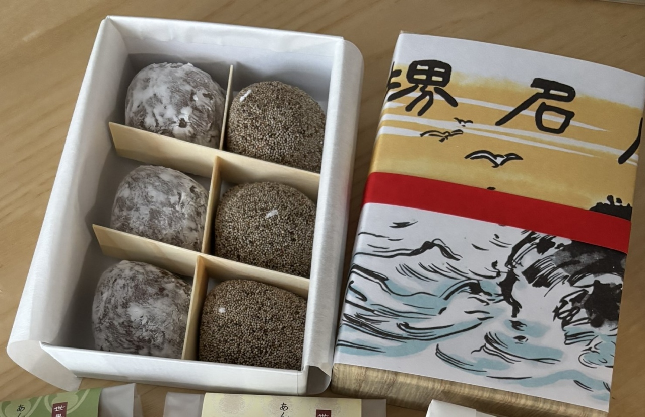芥子餅にはびっしりと芥子の実がまぶしてあって、室町時代から続いている伝統の和菓子とのことでした。中にはほんのりと甘い餡子が入っていました。上品なお味です。