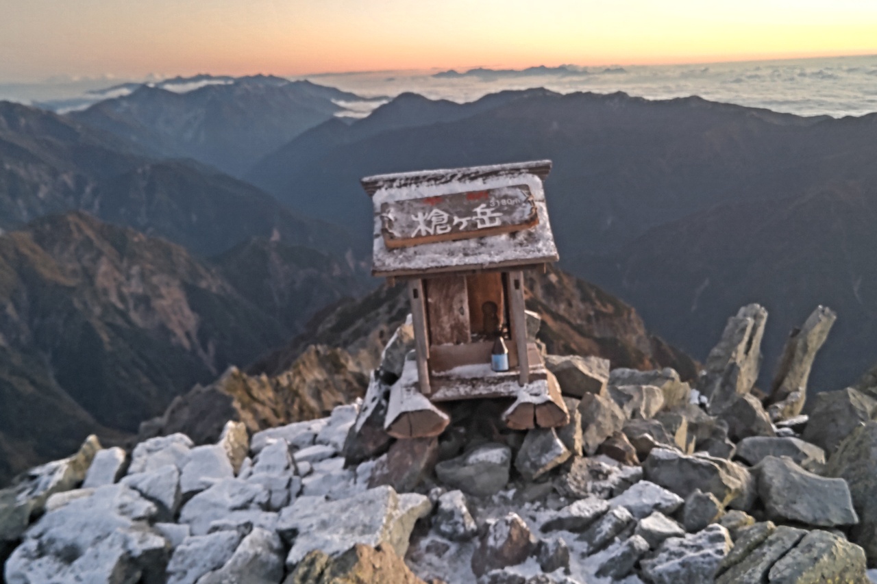 北アルプス屈指の人気を誇る山。尖った独特のフォルムが目を引きます。奥飛騨ロープウェイ駐車場から登りました。林道が長いですが、段々と高度が上がっていくと傾斜がきつくなり、しんどかったです。槍ヶ岳山荘で荷物を軽くし、いざ山頂まで。ヘルメット必須。鎖場と直立のはしごの連続。ご来光を眺めました。
