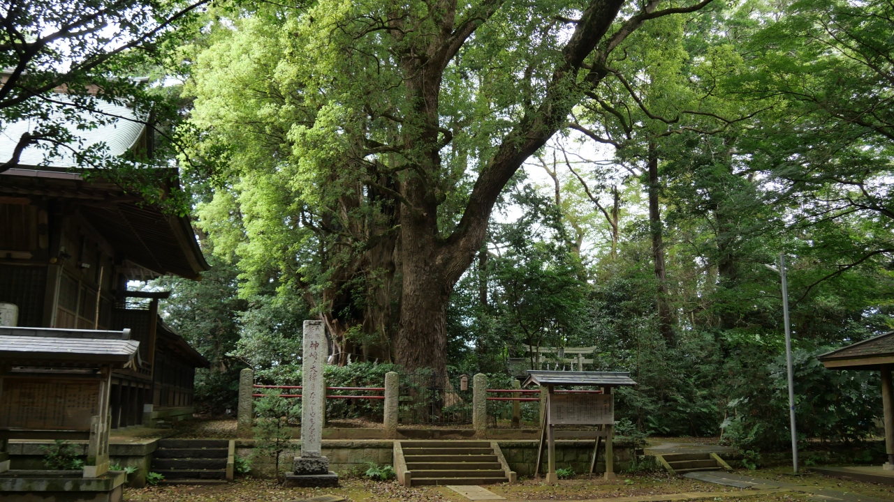 神崎町の中心部にあります。境内には天然記念物の大クスもあります