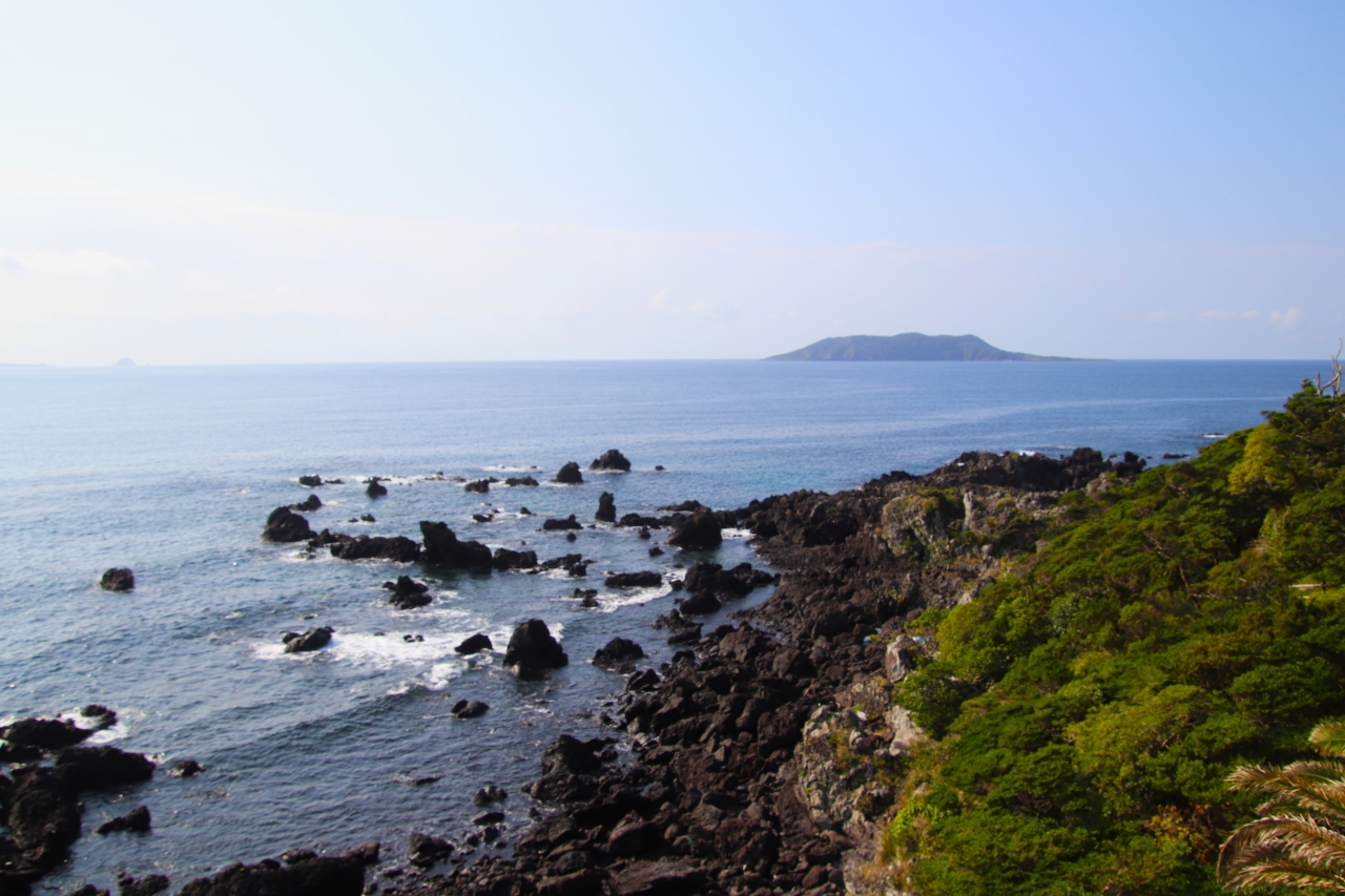 鬼岳や火ノ岳から流れてきた溶岩からなり、黒々でゴツゴツした岩の海岸が7kmにわたり続いています。