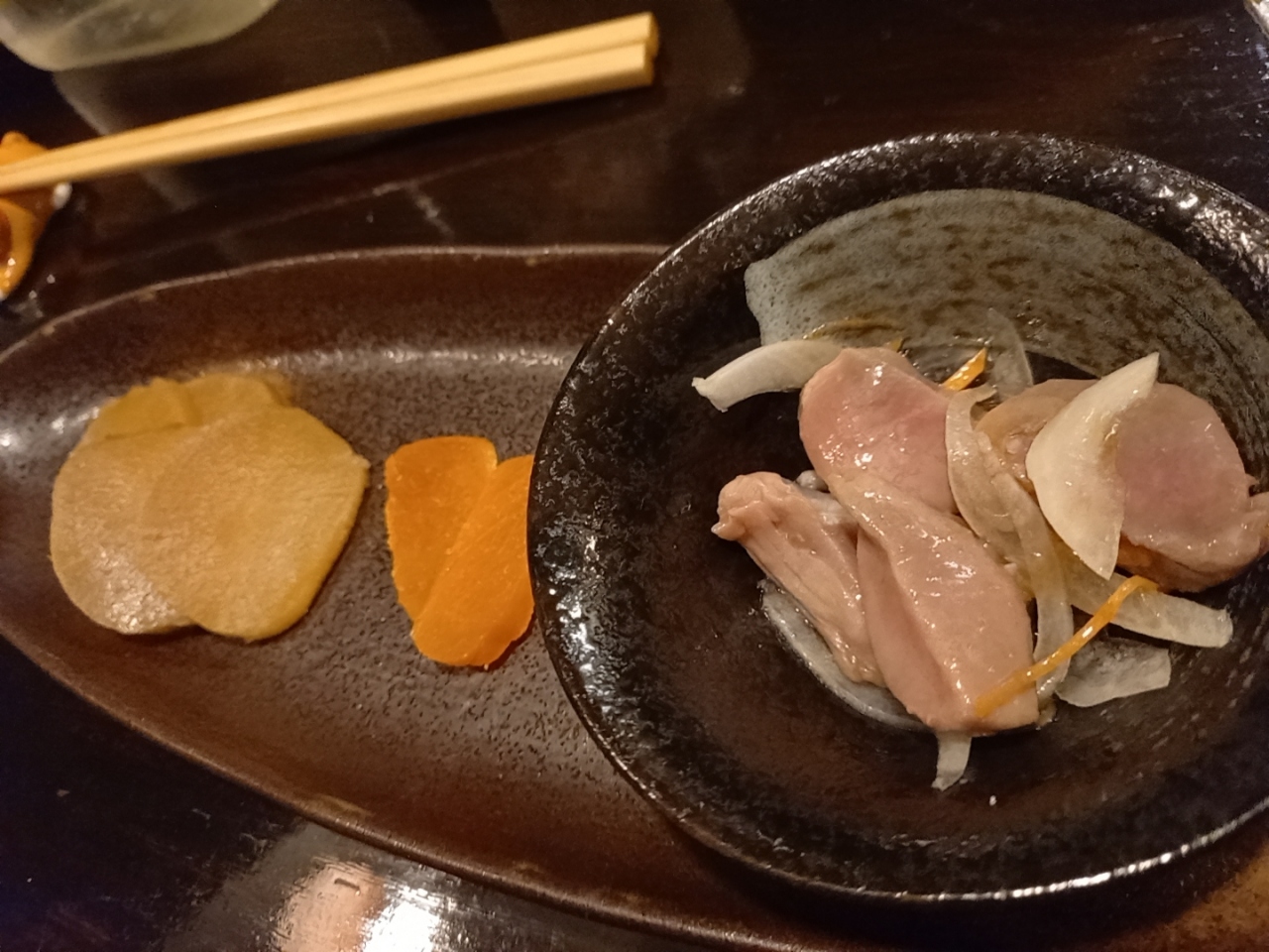 土曜日予約をして行きました。カウンターだけの席で、帰るころには満席です。お酒のメニューは手元にあり、料理のメニューはカウンター越しの壁に書かれています。料理のメニューはおじさんにとっては字が小さくて、見にくかったです。日本酒はけこっう数がありました。