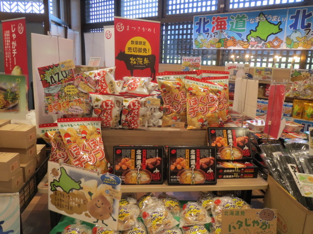 食事ができるお店が数店舗入ったミニフードコートがあるので、食事にも困らない。逆にメニューを選ぶのに困るかもしれない。カウンター席やテーブル席もあるから、おひとりさまから数名利用まで可能。お土産の中では、人気があって数量限定の、松阪牛の入ったまつさかめしはおススメ。他には、他社とコラボしたイセエビラーメンもある。お土産に何を買おうかと迷うことがないくらい、ジャストフィットするお土産が揃っている。北海道ラーメンやバタじゃがといった北海道限定品も扱っているのが面白いです。