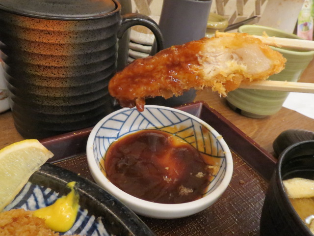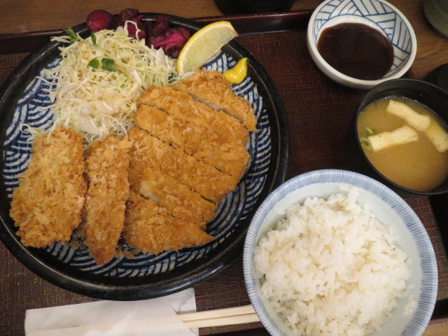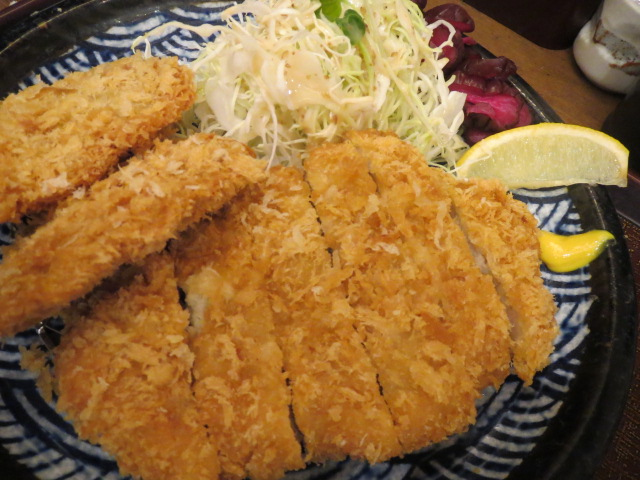イオンモール京都五条の3階にあるレストラン、バーミヤンのすぐ左隣にあります。訪れたこの日は日曜日のランチ時。満席状態で10分ほど並んでいました。店内の中央にカウンター席、テーブル席や小上がりの席もあります。オーダーしたのは、ヒレかつとロースかつ定食。ご飯、キャベツ、味噌汁はお替わり自由なのが嬉しい。かつはロース・ヒレともに、サクサクとした食感。いいパン粉を使って揚げてあります。肉の旨味がたっぷり味わえるように、肉の厚みがちょうどよく、揚げ加減も素晴らしい。ごまドレッシングをかけた千切りキャベツとかつとの相性も抜群。ご飯はもち米も混ざっていて炊き具合もいいので、食感は絶妙のレベルに。あげとわかめが入った味噌汁は白味噌仕立てで、昔よく飲んだ懐かしい味。お値段以上の味わいに満足しました。