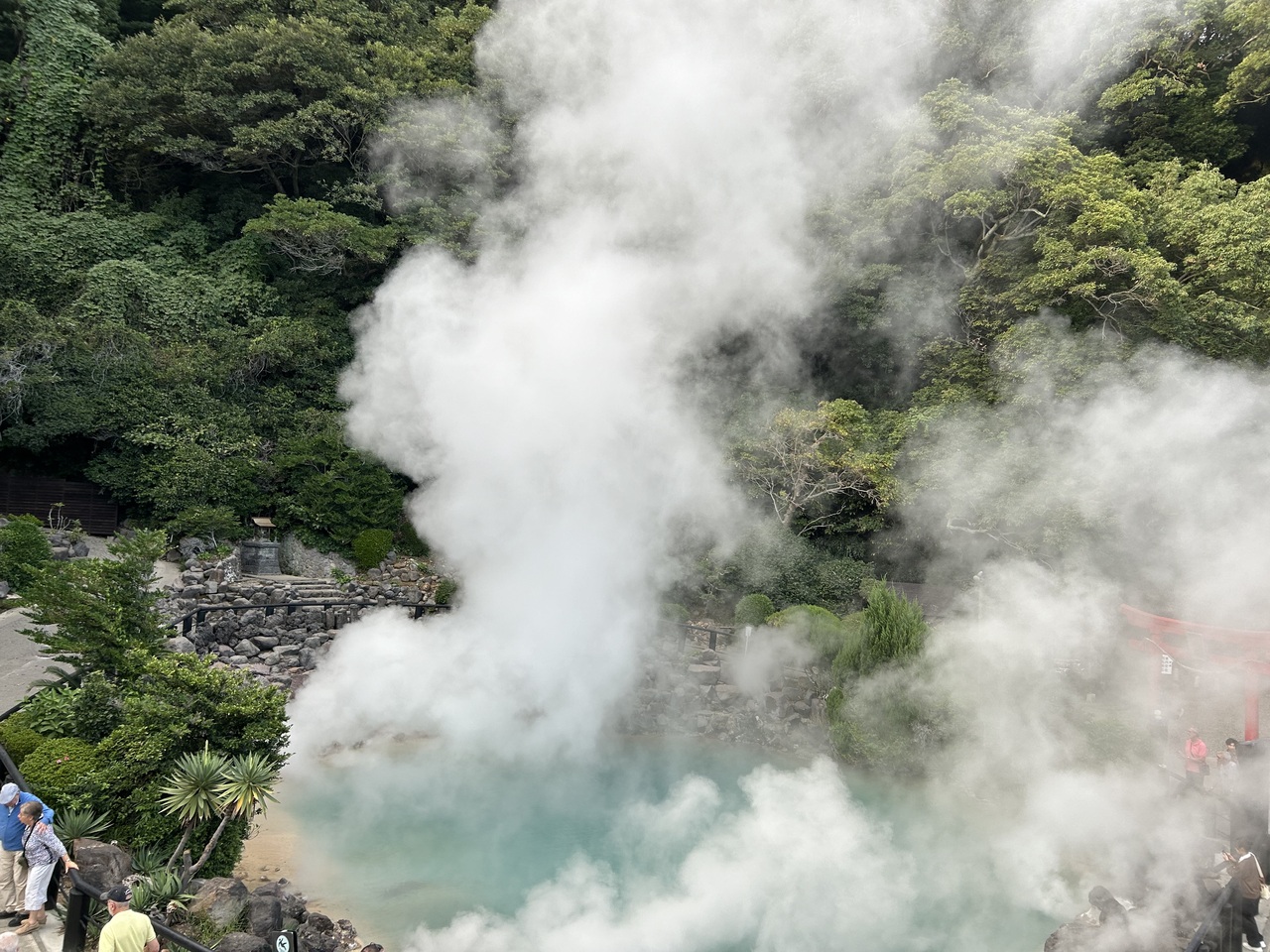 もうもうと温泉の湯気が立ち上り、イオウの匂いがしました。