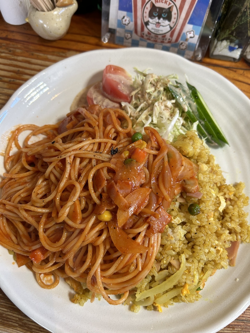 ナポリタンとドライカレーのベアセット。凄い量で友人に少し食べてもらいました。ドライカレーも美味しかったです。ナポリタンはどの店のよりも美味しかったです!また行きたくなります。メニューも豊富て悩むくらいでしたー。おススメのお店です!