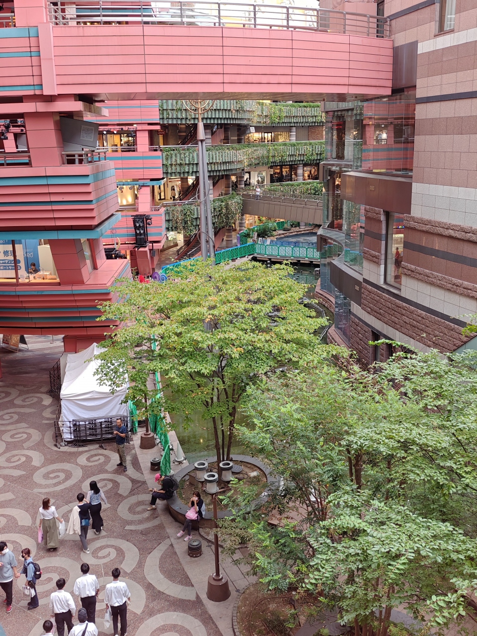 特徴的な造形のビルに多くの店舗が入店しているが、いわゆる商店街と異なるのは全国展開、或いは全世界展開するショップばかりである事。