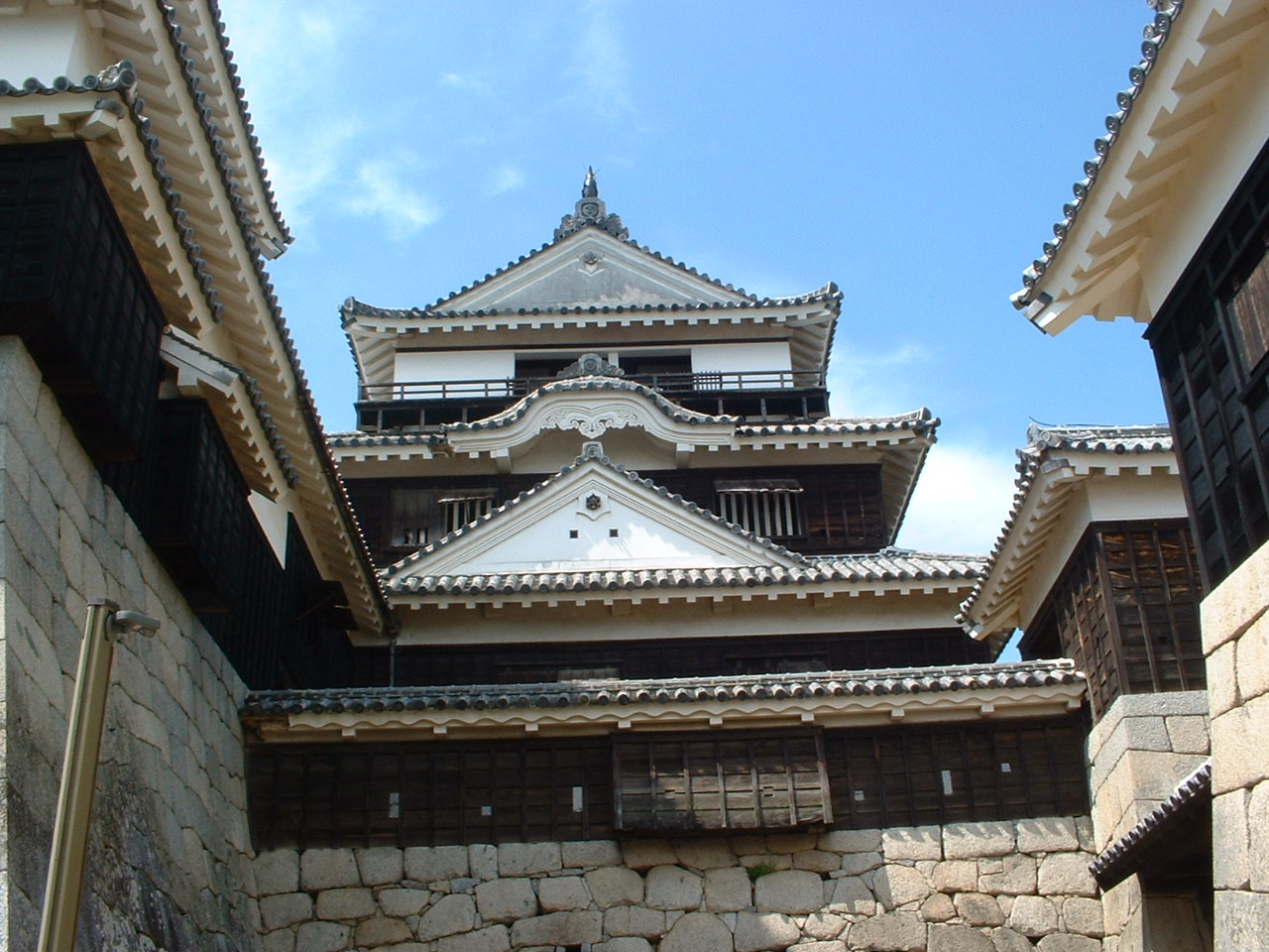松山城には5つの登城ルートがありますが、徒歩ルートは30分程度かかることからロープウェイを選択しました。山頂の本壇にある天守は江戸時代後期に再建されたもので、現存12天守の中で最も新しいものです。日本三大連立式平山城の一つにも数えられ、天守からは松山市内が一望できます。