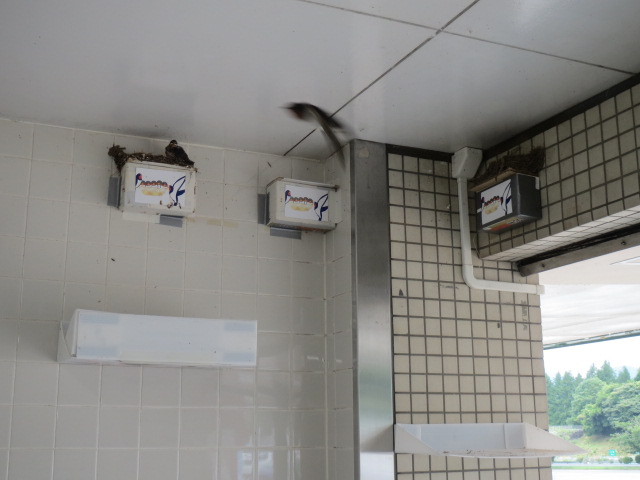 - ツバメの巣があちこちに 清掃が行き届いているトイレ