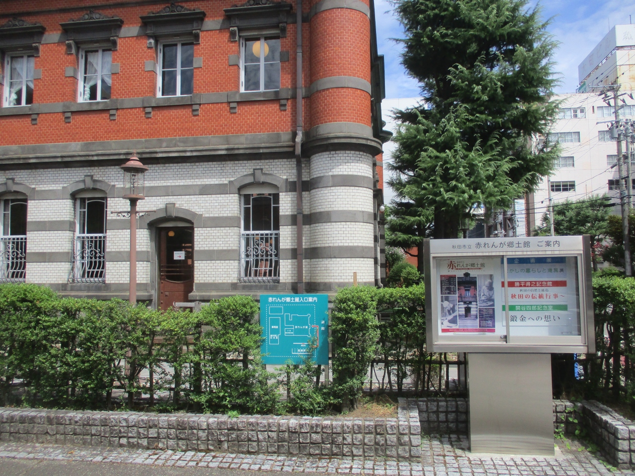 明治45年に建てられた旧秋田銀行本店で、現在は資料館になっていました。中に入ると広い営業室がありました。2階まで吹き抜けで当時のままだと思います。古くて立派なカウンターがあり、もともと職員が業務をしていたところは展示室になっていました。