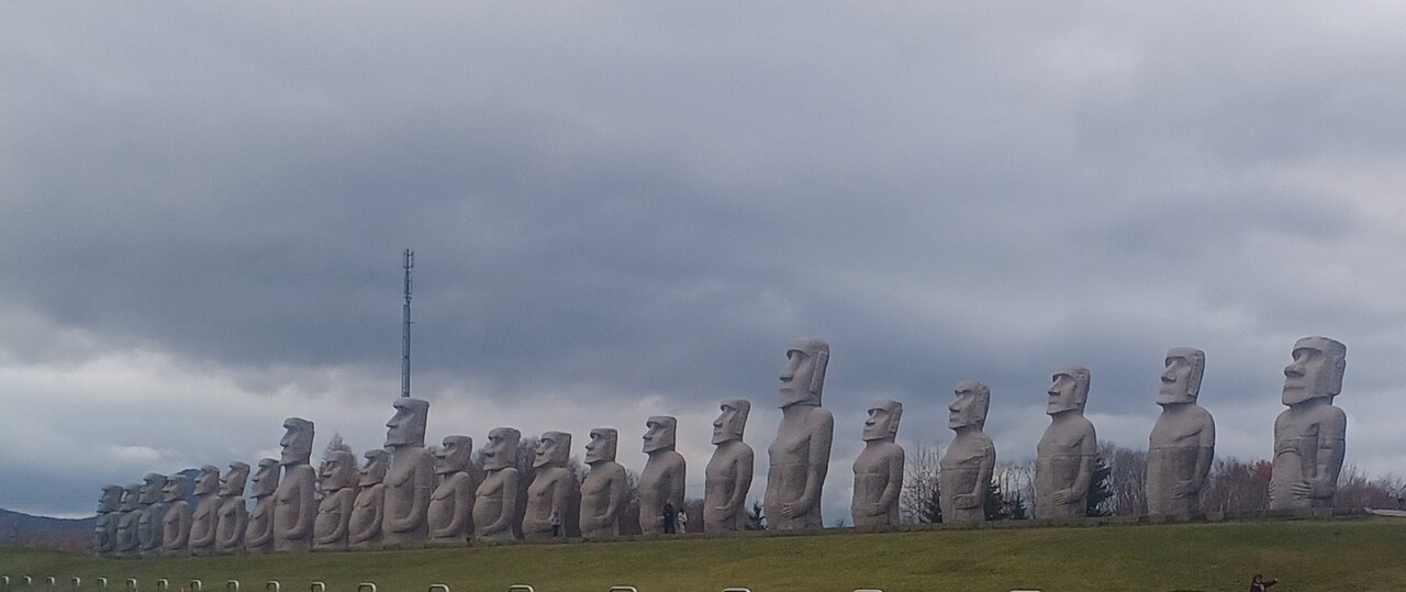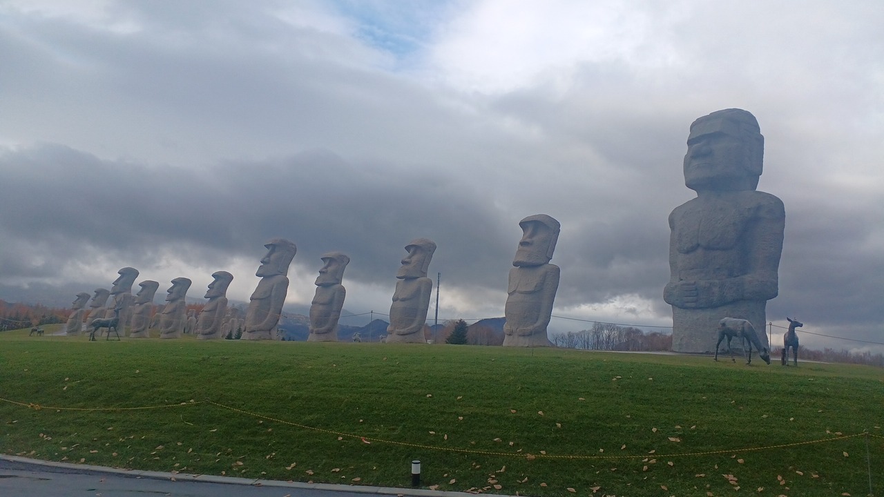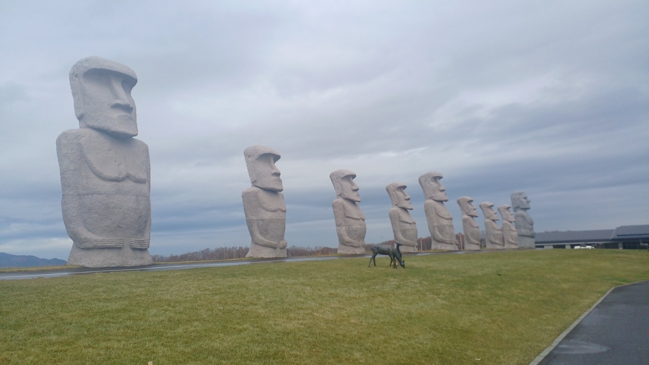 新千歳空港から約60分。広すぎる広大な敷地の霊園。モアイ像が40体くらい。その近くに頭大仏殿(安藤忠雄建築)。少し歩くとストーンヘンジ。霊園管理事務所へも立ち寄りしたら、頭大仏殿の製作過程の本(サンプル)が置いてあり、ラベンダーの季節はとてもキレイ。霊園だが、韓国か中国の観光バスが2台来ていて観光地になっていた。