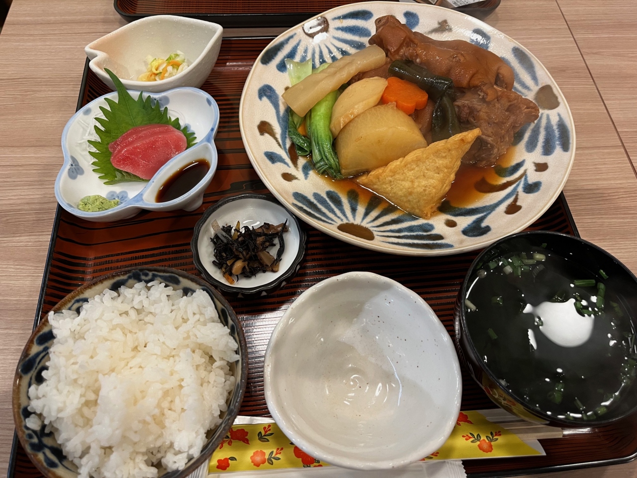 豆ずくし定食を頼みましたが、おとなりさんのてびち定食がおいしそうで、帰にもここによっててびち定食を食べました。