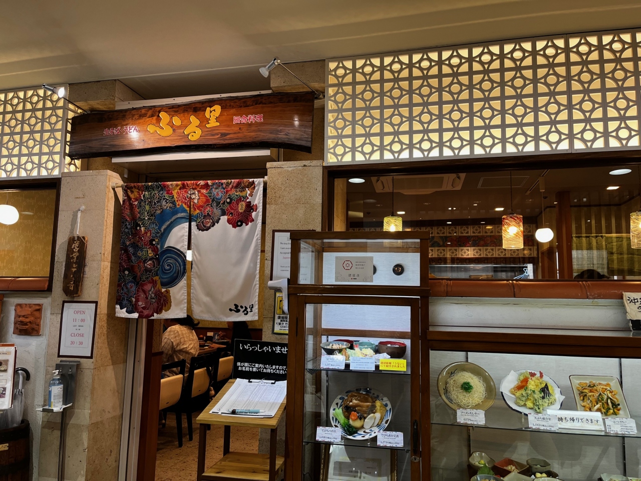クルーズ前で大きな荷物を抱えて行動に制約があるため、ゆいレール県庁前駅で下車してすぐのリウボウ地下のこちらの店で食事しました。メニューが豊富で、沖縄そば・豆ずくし定食・てびち定食・琉球御膳・ふる里定食・なすみそ定食・ゴーヤチャンプルー定食など。