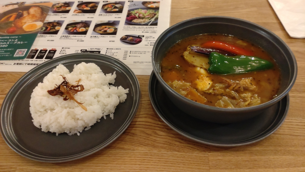 桑園駅高架下にお店はあります。スープカレーがメインのお店でランチ利用しました。豚角煮スープカレー(さらさら)を辛さレギュラーで食べましたが、次はもう少し辛くてもいいかなと思いました。具材の種類も多くトッピングも楽しめます。13時過ぎの入店でソフトドリンク無料でした。