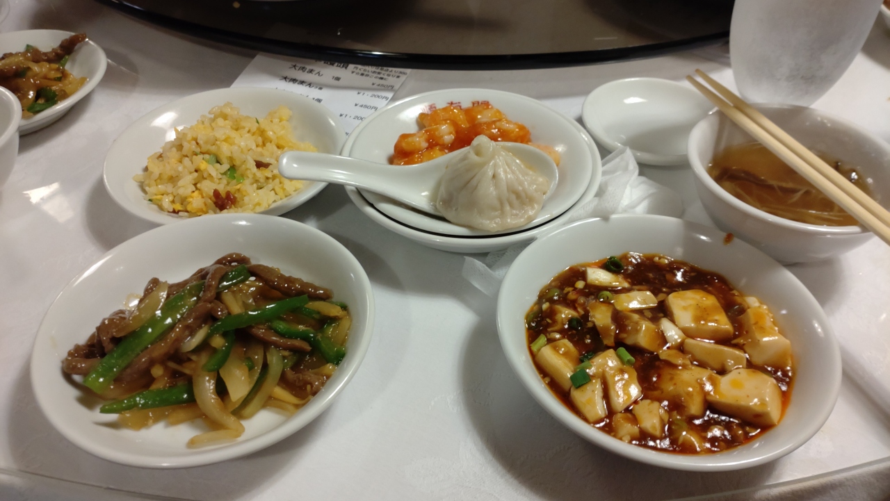 条件付き無料バス旅のランチで利用しました。棒棒鶏サラダ、青椒肉絲、エビチリ、麻婆豆腐、スープ、炒飯、小籠包、海老入り蒸し餃子等、料理はどれも熱々で運ばれ、分けるのに困らない量でたっぷりありました。デザートの杏仁豆腐も美味しかったです。お土産用の蒸し餃子とシューマイ、胡麻だんごの販売案もあり、多くの人が購入してました。