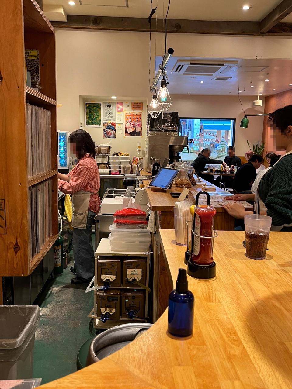 平日の12:30に入店した時はまだ数席空いていましたが、オーダー後、料理が出てくるのを待つ間にあっという間に満席。食べ終わって店を出る頃には外に行列ができていました。若いカップル客が多く、場所柄か外人客の姿もあります。アナログのターンテーブルにカリビアン・スカのLPが2枚。交互に静かに流しています。