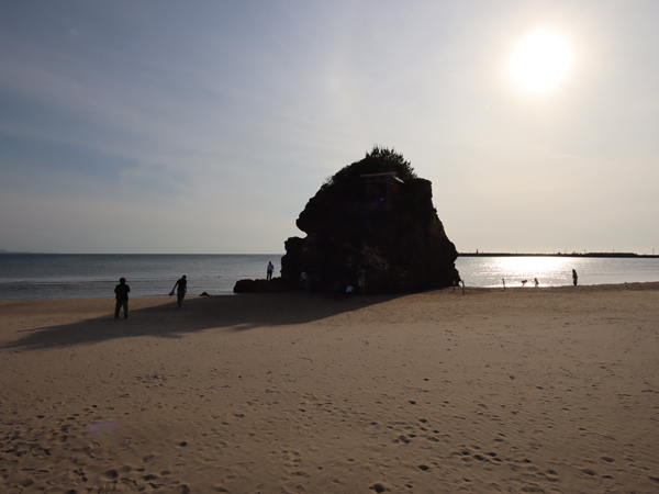 ただ、17時過ぎに行ったら、まだかなり高い位置にある太陽がちょうど逆光だったため、弁天島を撮影すると黒くつぶれてしまいました。