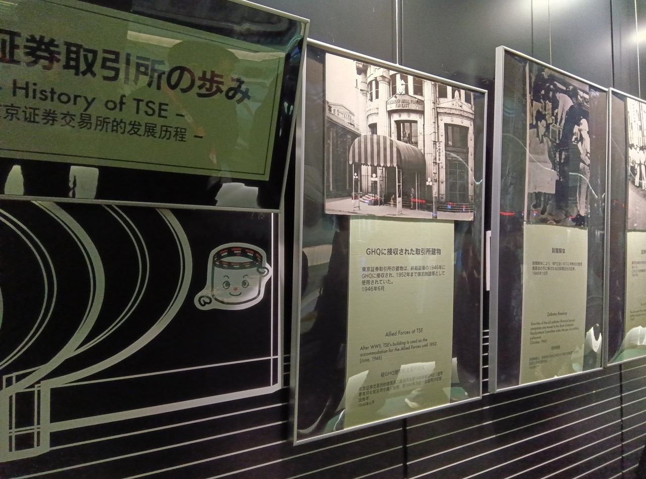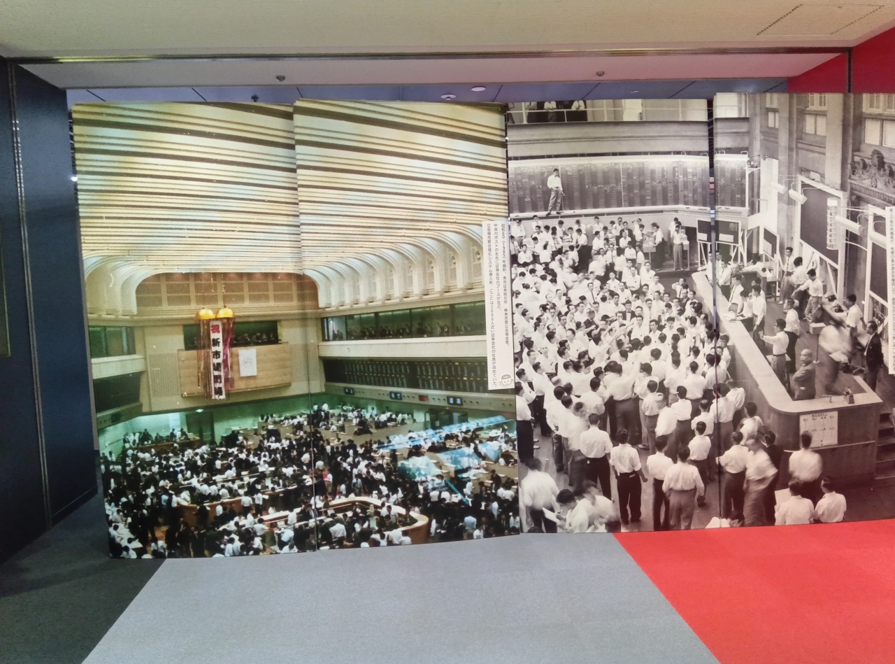 約30分のツアー、パネルや実際の取引に使うくるくる回るチッカ―や、年末の大納会に鳴らす鐘などを近くで見られます。昔、人々が銘柄を手サインでしていたころの写真もあり、その説明もしてくれます。