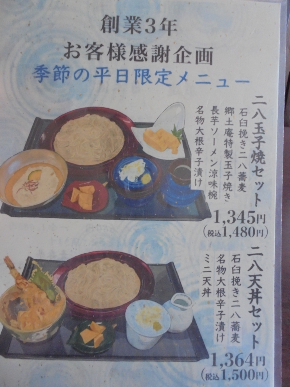 お店の前に専用無料駐車場があります。店内はカウンター席とテーブル席、二階席もあって大人数でも対応できそうです。訪れた時間はランチ時間を少し過ぎた頃。意外と空いていました。スタッフさんの接客対応やテーブルサービスのレベルが高く、落ち着いた雰囲気でゆっくりと食事が愉しめそうです。オーダーしたのは季節の平日限定メニュー、二八天丼セット。石臼挽き二八蕎麦に名物大根辛子漬けとミニ天丼が付いてボリュームあるセット。蕎麦は細麺、コシがあって喉へスルッとぬける。蕎麦の香りと旨みがたっぷり。大根の漬け物はこのお店の手作りだとか。天丼は大きな海老天と野菜天、サクサクの天ぷらで美味しい。出汁が多めにかかり、ご飯との相性も抜群。ボリュームも味も大満足の二八天丼セットでした。