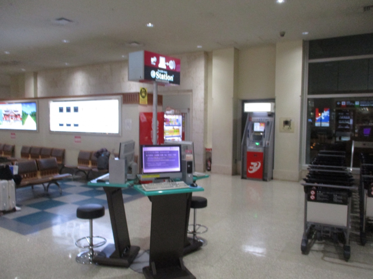 那覇空港国内線ターミナルの出発階にコインパソコンがありました。パソコンを持参していないが、今、すぐ必要と言う場合のときに助かります。羽田空港にこんなサービスはなかったと思いますが、那覇空港では長時間過ごすことが多いので、コイン式パソコンはいいサービスに感じました。