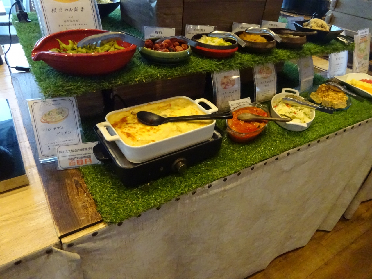 ホテルの朝食付きプランですとここでバイキングになります。使われている食材は宮城県周辺の、いわゆる「地産地消」を売りにしていて、ご当地メニューもいろいろと揃えてありました。