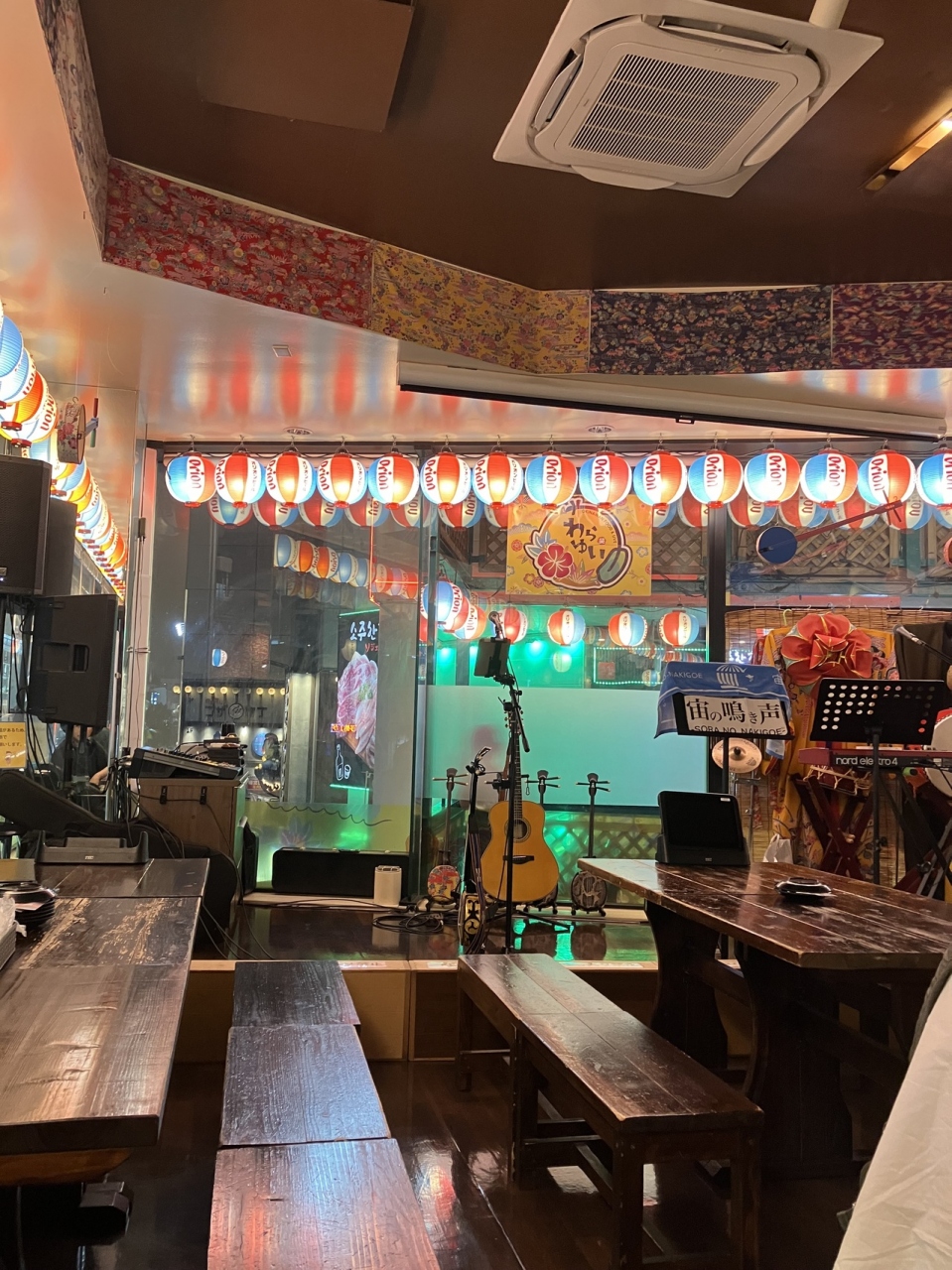 沖縄料理と民謡ライブが両方楽しめると思いホットペッパーで席だけ予約して行きました。ライブ時間は3回あり初回19時だけ見ました。好きなメニューを注文しライブも見れて良かったです。場所は国際通りの真ん中あたり2階にあります。席のタッチパネルで注文、会計は入口付近でセルフレジでした。