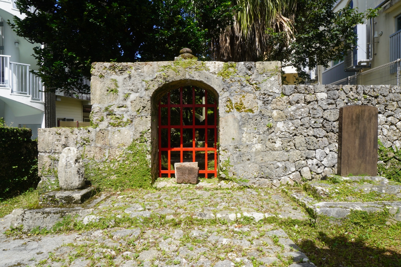安谷川御嶽は、当蔵村の御嶽。御嶽というのは、神が存在する、あるいは来訪する場所であり、祖先神を祀る場、地域を守護する聖域のこと。神社か祠みたいな存在かな。丈夫な石垣が正面に建っているし、内側には神聖な岩と木を中心とした石囲いがあります。