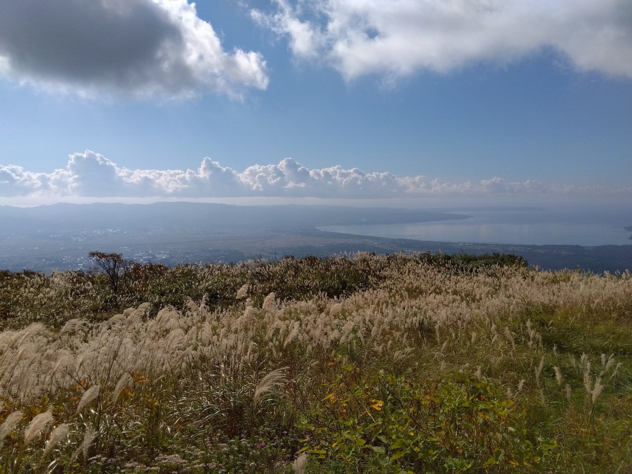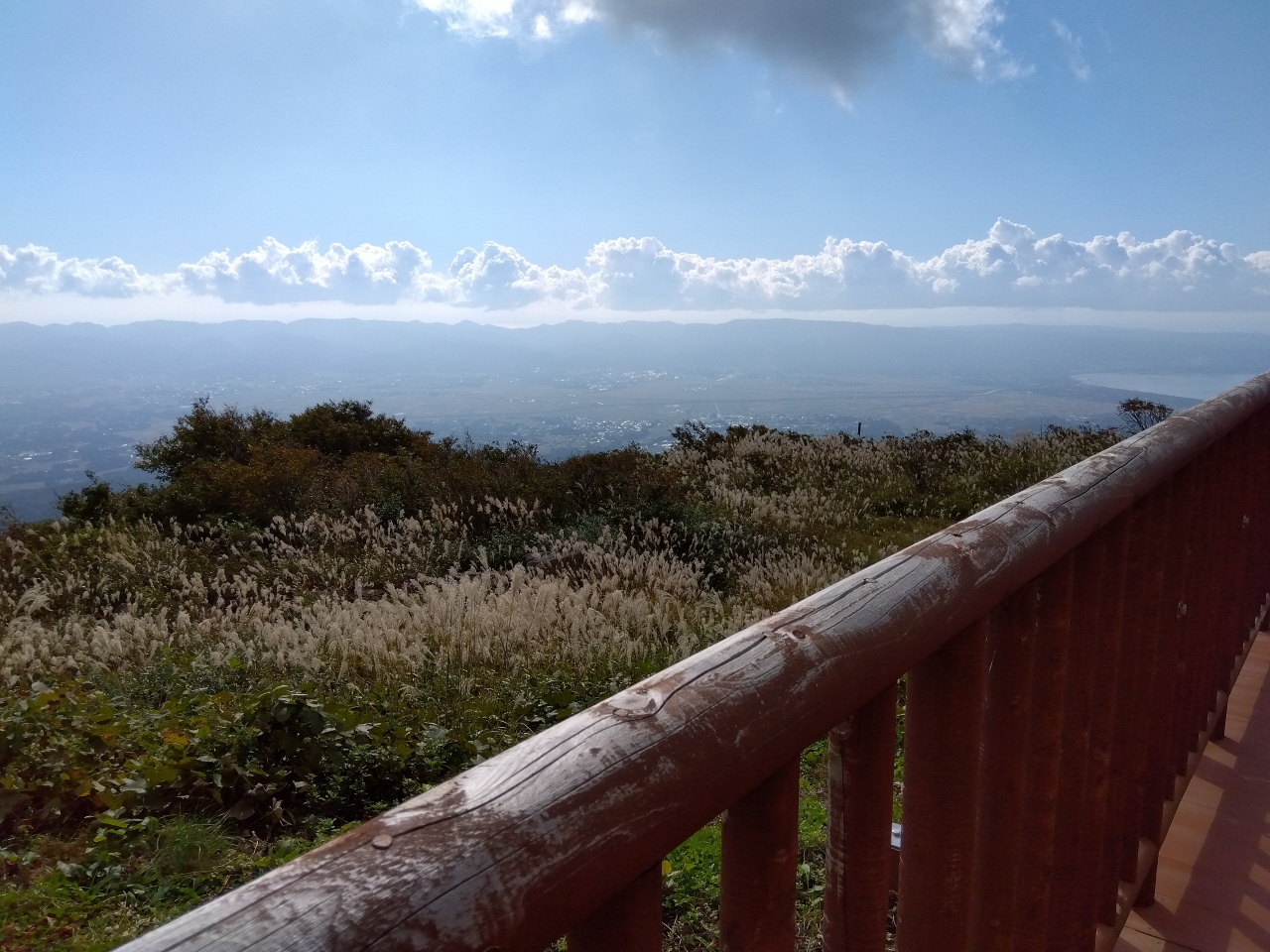 展望デッキの周りにはススキが生い茂っており、両津港、小佐渡山脈、国仲平野が一望できました。