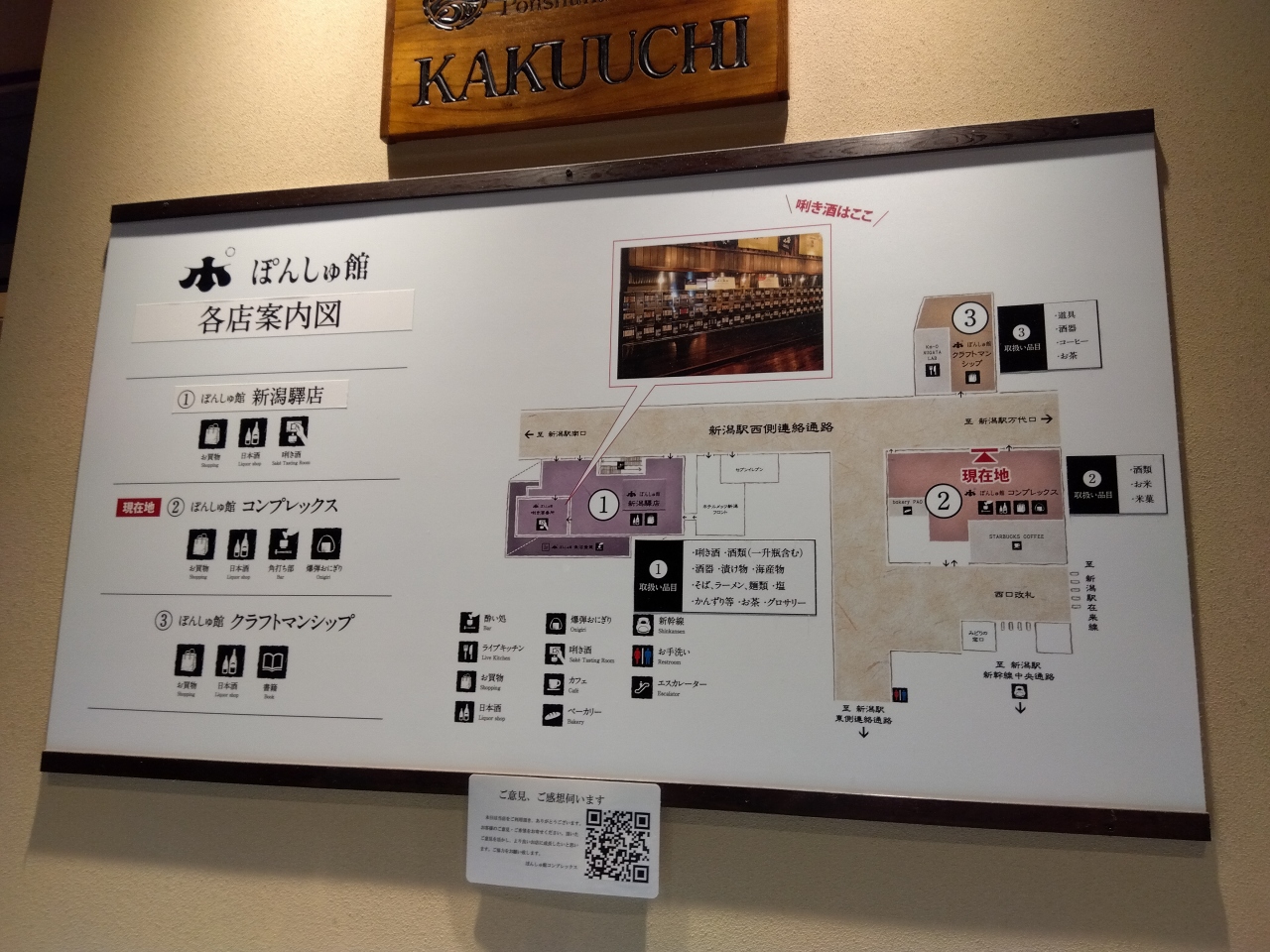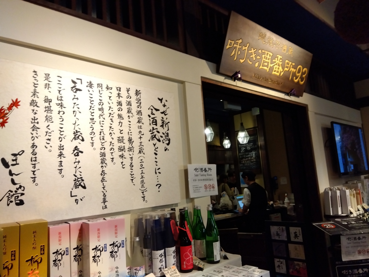 CoCoLo新潟のメッツ館「ぽんしゅ館 新潟驛店」に併設されており、新潟県内の全ての蔵の酒が揃っており、500円で唎酒ができます。