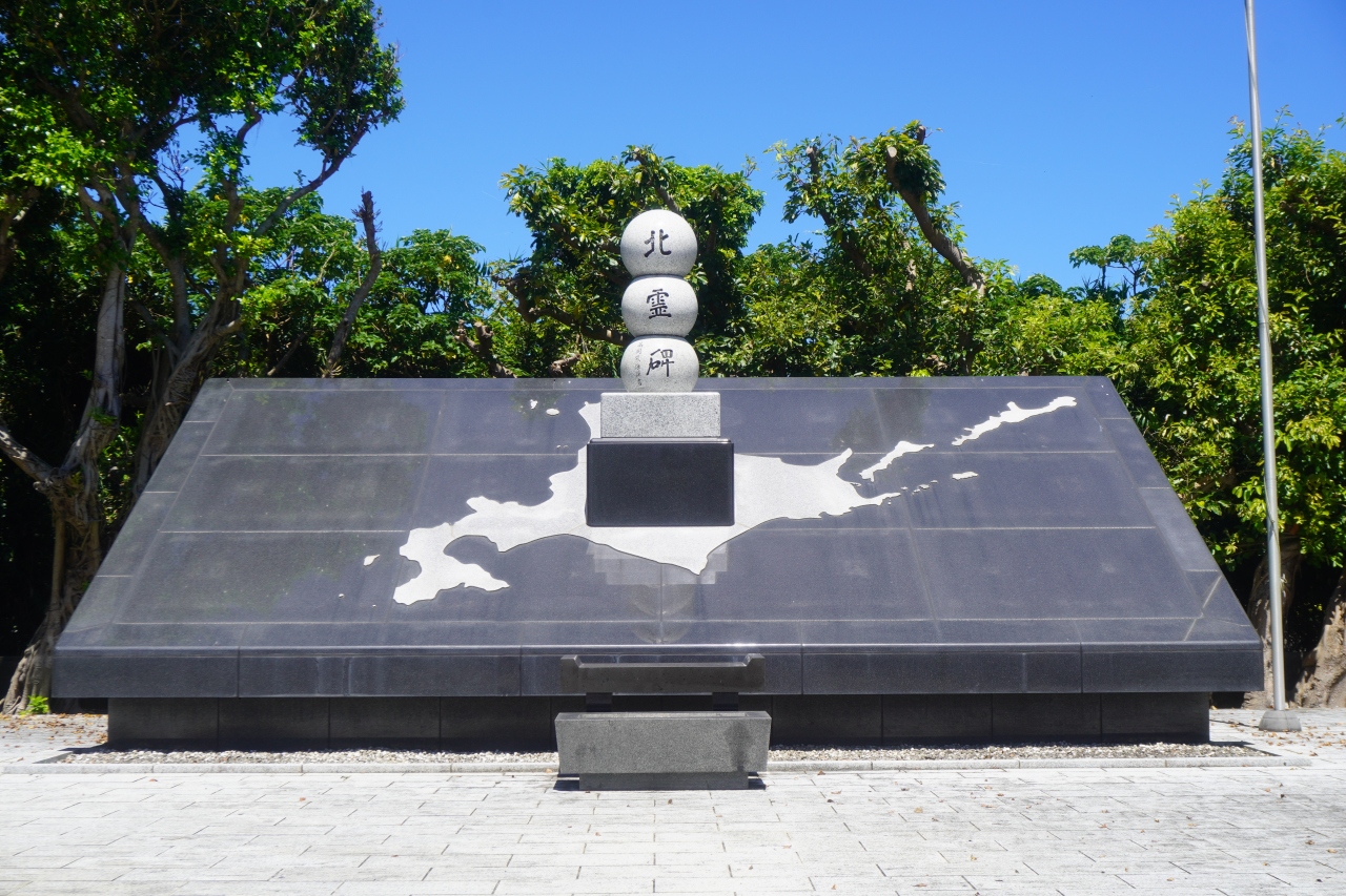 北霊碑は、平和創造の森公園の東側に隣接する米須霊域の一角。沖縄戦戦没者10,850柱、南方諸地域戦没者30,000柱、合計40,850柱を合祀していて、沖縄戦戦没者10,850柱は、都道府県の中でも一番多いかもしれません。北海道の地図をバックにしていて、すぐに北海道だと分かります。