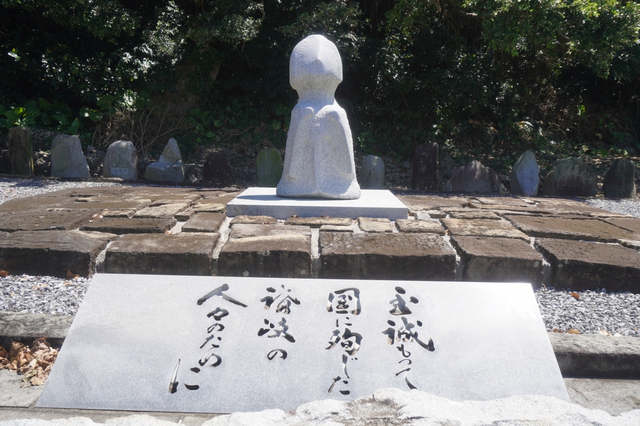 沖縄戦戦没者1,120柱、南方諸地域戦没者18,637柱、満州および中国方面戦没者12,656柱、合計32,413柱を合祀する香川県の慰霊塔。奉公というのは、讃岐でかつてお姫様の身代わりになって命を失った乙女の話。その娘を奉公さんと名付け、人形を作って功績をたたえたのだとか。碑はその人形を象ったものです。
