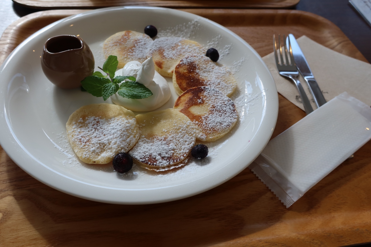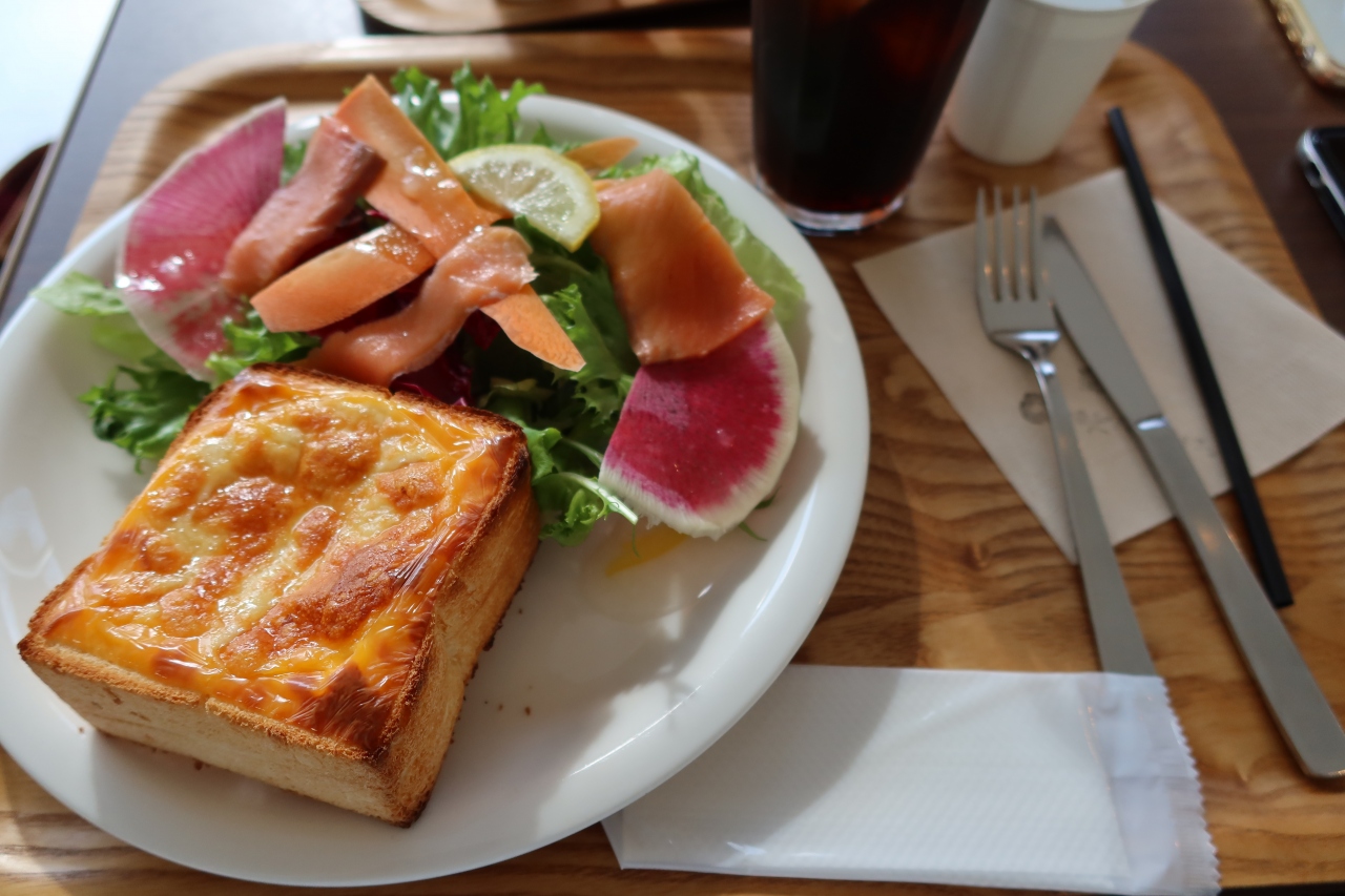嵯峨嵐山文華館の庭園に面してテラス席と、屋内席があり、とてもお洒落です。ランチで頂いたのはスモークサーモンとサラダのトーストセットとお出汁と京七味マヨの卵焼きドッグとデザートのパンケーキ。いずれも、ふわふわの食感が美味しいランチセットでした。嵐電嵐山駅近くのレストランは昼食時非常に混んでいますが、こちらは、人も多くなく、外を見ながら、ゆったりした気分で味わうことが出来ます。