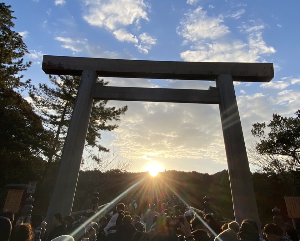 初めて伊勢神宮へ初詣でお詣りしました。鳥居越しの初日の出が拝みたくて夜明け前に行き、何とか運よく対面できました。鳥居前はかなり前から行列ができているので早めの出発を。真っ暗で灯りがないので足元には注意です。