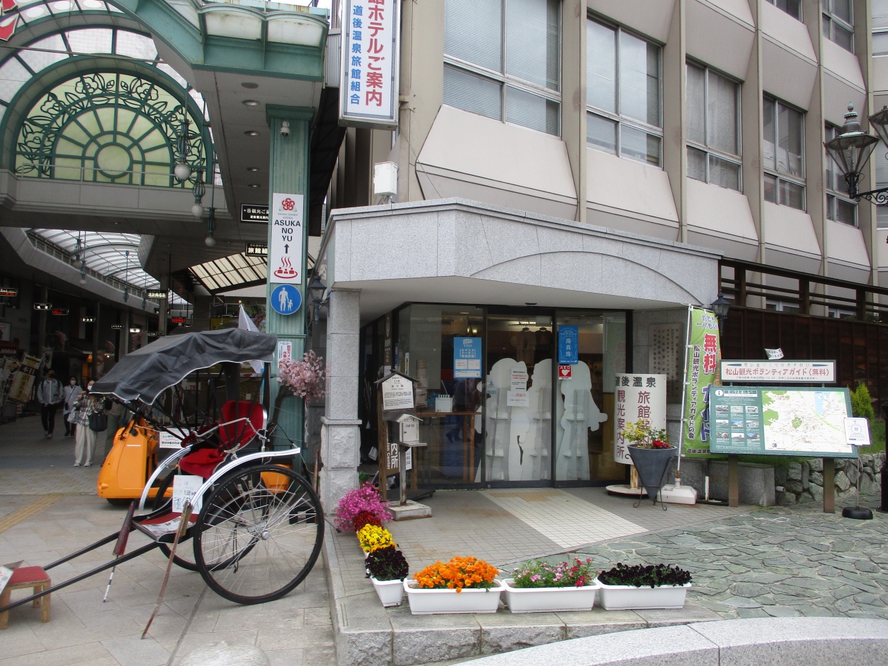 道後観光人力車カラクリ時計前元祖くるまやさんは1982年に日本で3番目に走り始めた観光人力車です。タイムスリップしたようなデザインは、写真映えするアイテムだと思いました。風情のある街並みを移動している光景を撮影してしまいました。
