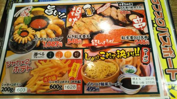 昼からやっている居酒屋さんなので昼ごはんもいただけます。今回は夜に飲みに行ってきました。魚料理がメインですが、肉系をはじめいろんなメニューがあります。お酒の種類も豊富でいろいろ楽しめます。金曜日だったので2時間という時間制限ありましたが、心行くまで飲めました。