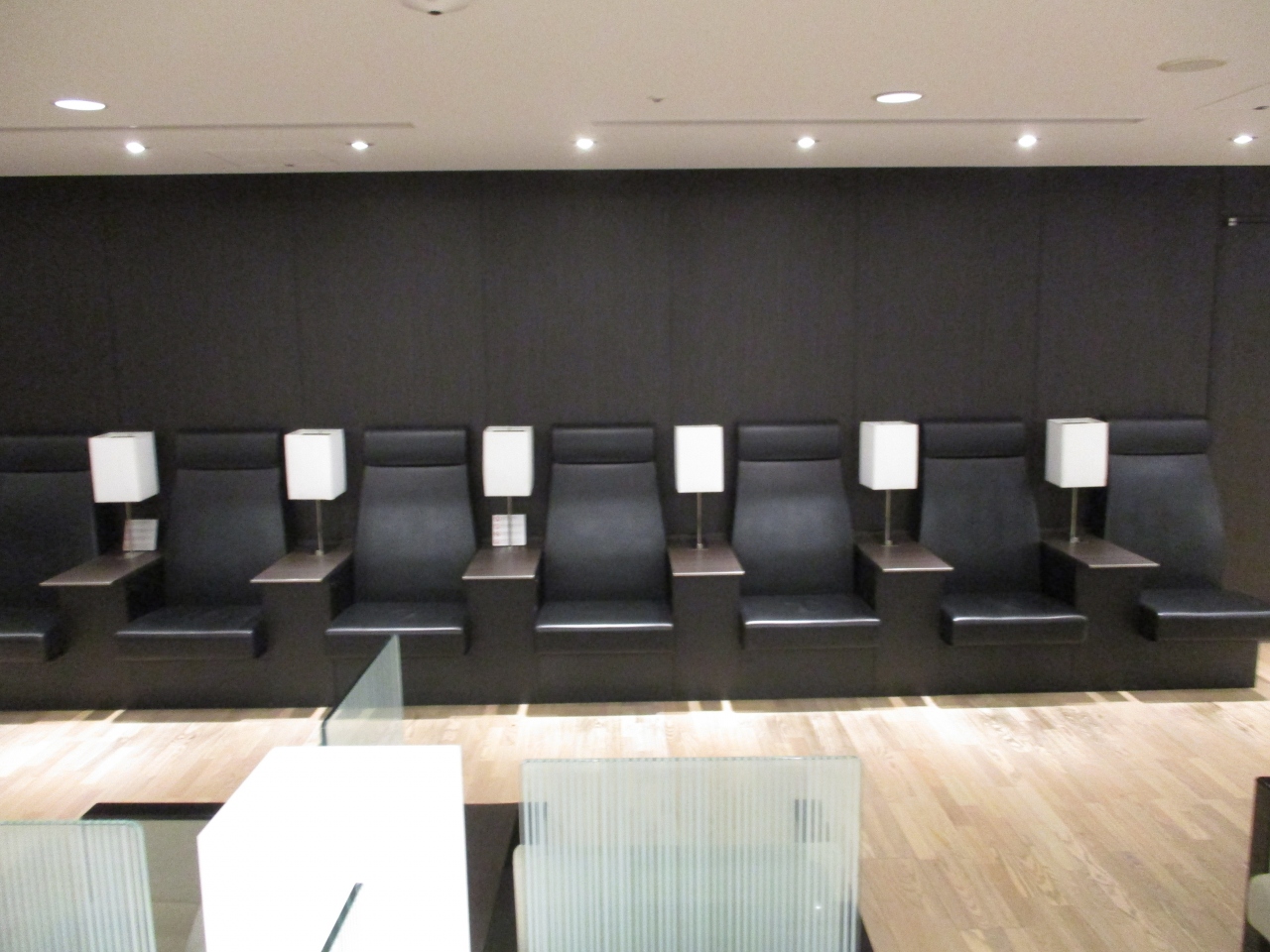 羽田空港国内線ANAラウンジの椅子はたくさんの人が座れるように、少し小さめでした。整然と並べられていました。土曜日の朝であったため、ビジネスマンの利用客は少なかったです。きっと、平日は朝からこれらの座席が埋まるものと思われます。