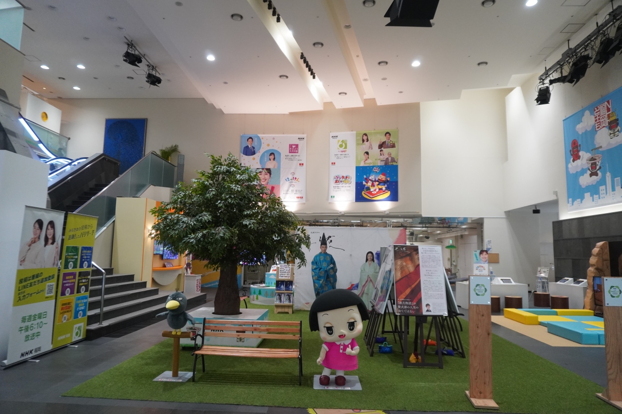 NHK福岡放送局の中にあるNHKギャラリーですが、ほかの県の放送局のPR展示と大きくは変わらないでしょう。大河ドラマの「光る君へ」や人気キャラクターの「ちこちゃん」など。建物が大きい分だけ余裕もあるというくらいです。