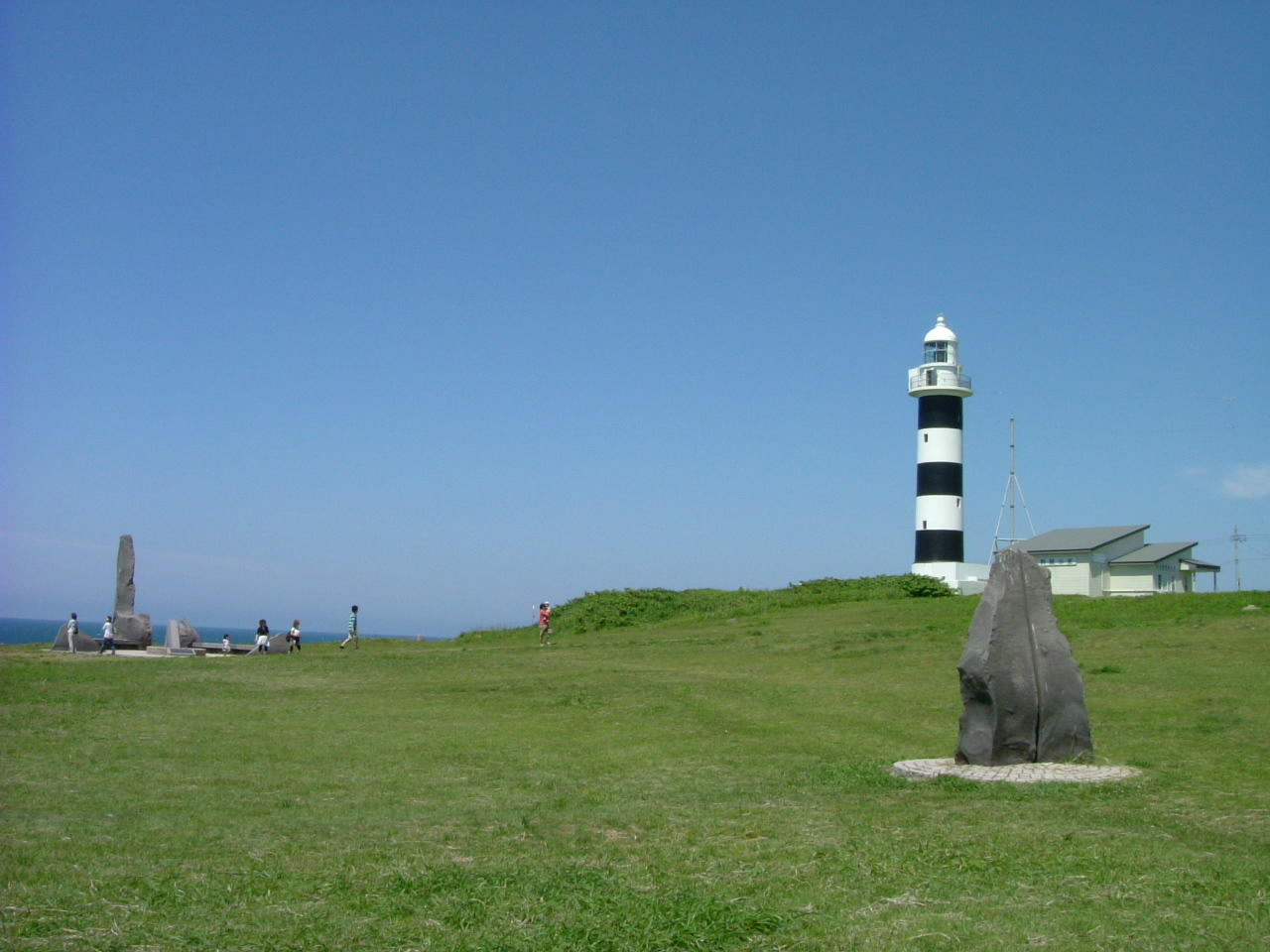 入道崎は、男鹿半島の最北端。白黒のツートンカラーの灯台が見たくて訪ねました。芝生の続く見晴らしのいい場所に建つ灯台は期待通りの見応え。芝生の緑とのコントラストも素晴らしいです。ただ、芝生の気持ち良さとその先にある岩場の海岸の眺めもまた大きな見どころ。北の海の荒々しい景色かなと想像していましたが、むしろ穏やかで繊細な印象。入道崎は灯台だけではないですね。