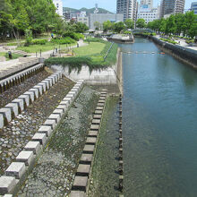 大浦天主堂とグラバー園などを観光した後、オランダ通りのベーカリーでクロワッサンを買って、長崎水辺の森公園に行きました。水辺のプロムナードにある藤棚の下で休みました。石のベンチに座り、クロワッサンを食べました。運河と海に囲まれた公園で、広い駐車場と3つのブロック、長崎県美術館があります。運河に趣ある橋が架けてあり散歩しやすかったです。長崎港周辺の山からの湧水を利用していると説明板に記されていました。大浦海岸通りは車が多く通りますが、運河が間にあるのでゆっくりできました。石のベンチが気持ちよかったです。