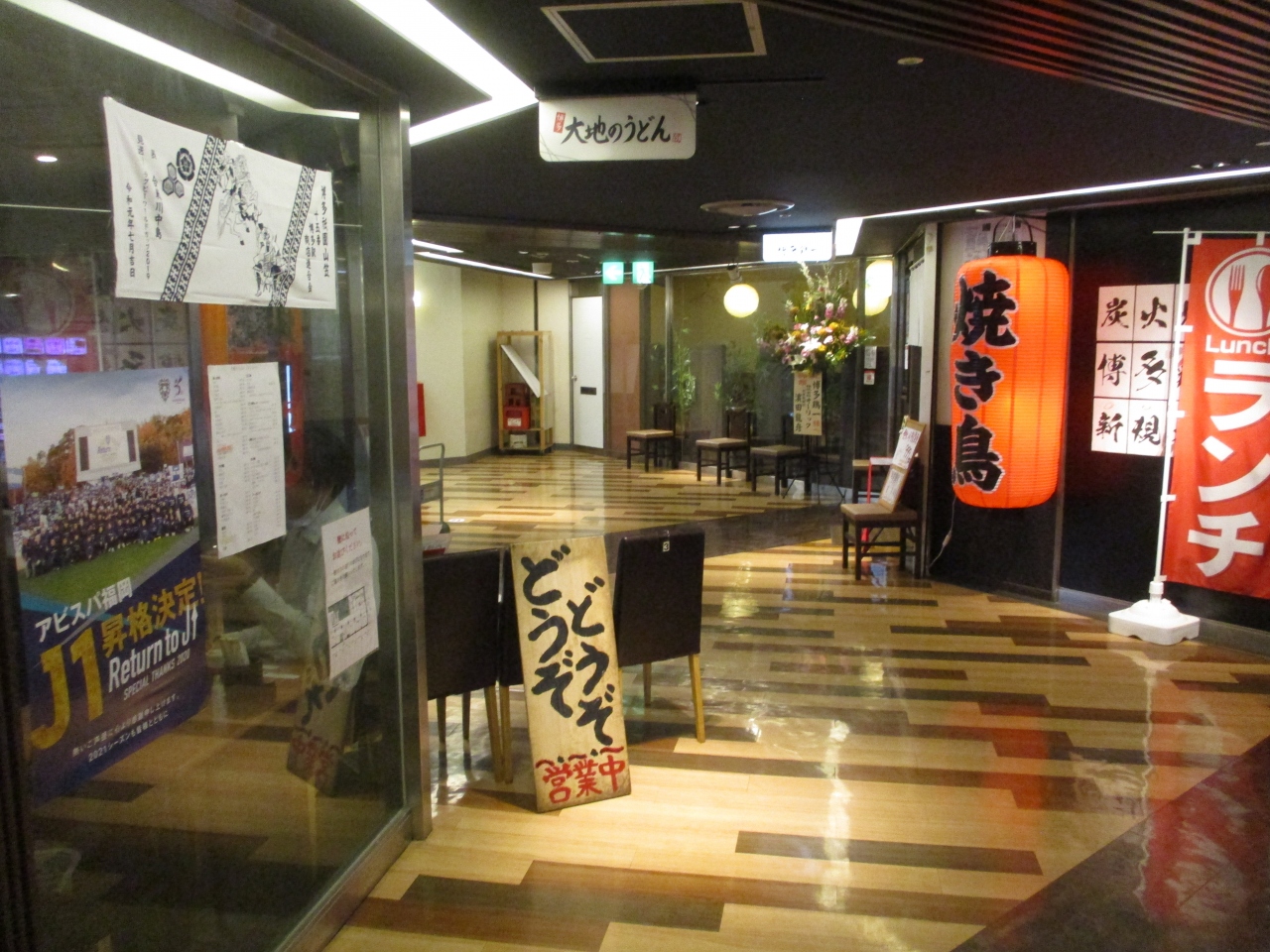 大地のうどん 博多駅ちかてんはビジネス街にあることから、平日の昼間はビジネスマンやOLで行列でした。回転するのも早く、どうぞどうぞとすぐに店内に入れました。ごぼう天うどんを注文しましたが、大きくて揚げたてのごぼう天と腰のある麺がおいしかったです。