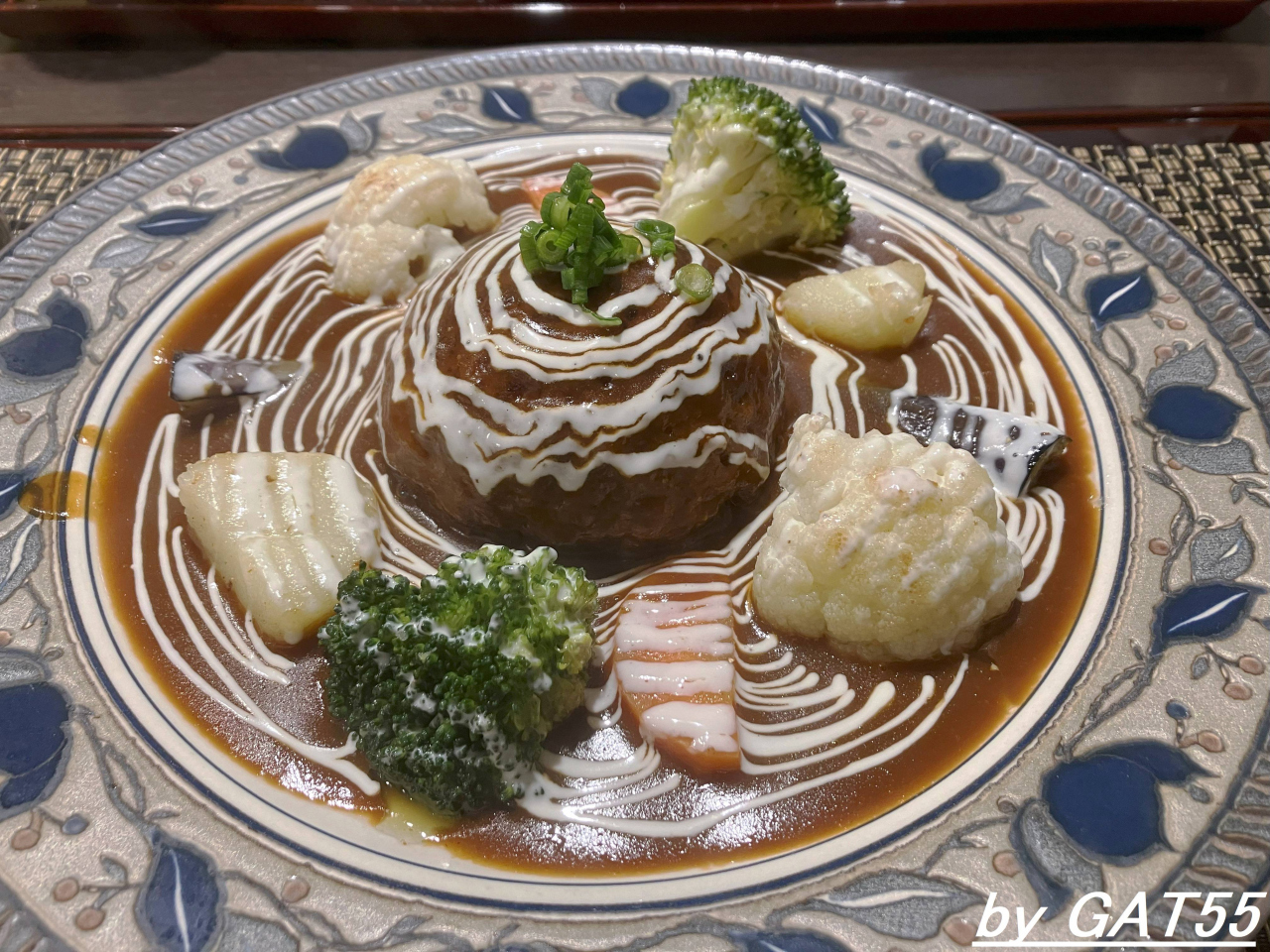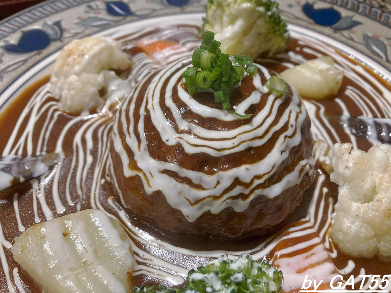 シチューとカレーの専門店を謳っていますが、お目当てはハンバークステーキシチューソース掛け。和牛100%のジューシーなハンバーグと付け合せの野菜が添えられソースが芸術的にかけられています。食べ応えがあり、ご飯もおかわり自由。