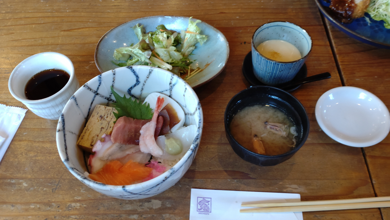 土曜日、予約なしのランチで利用、11時半の開店と同時に入店。ランチメニューから上ちらしを注文、サラダ、茶碗蒸し、みそ汁に食後のコーヒーが付いて¥1200でした。食前出されたほうじ茶のお代わりもしてゆっくり食べました。見ると周りも中高年ばかりでした。