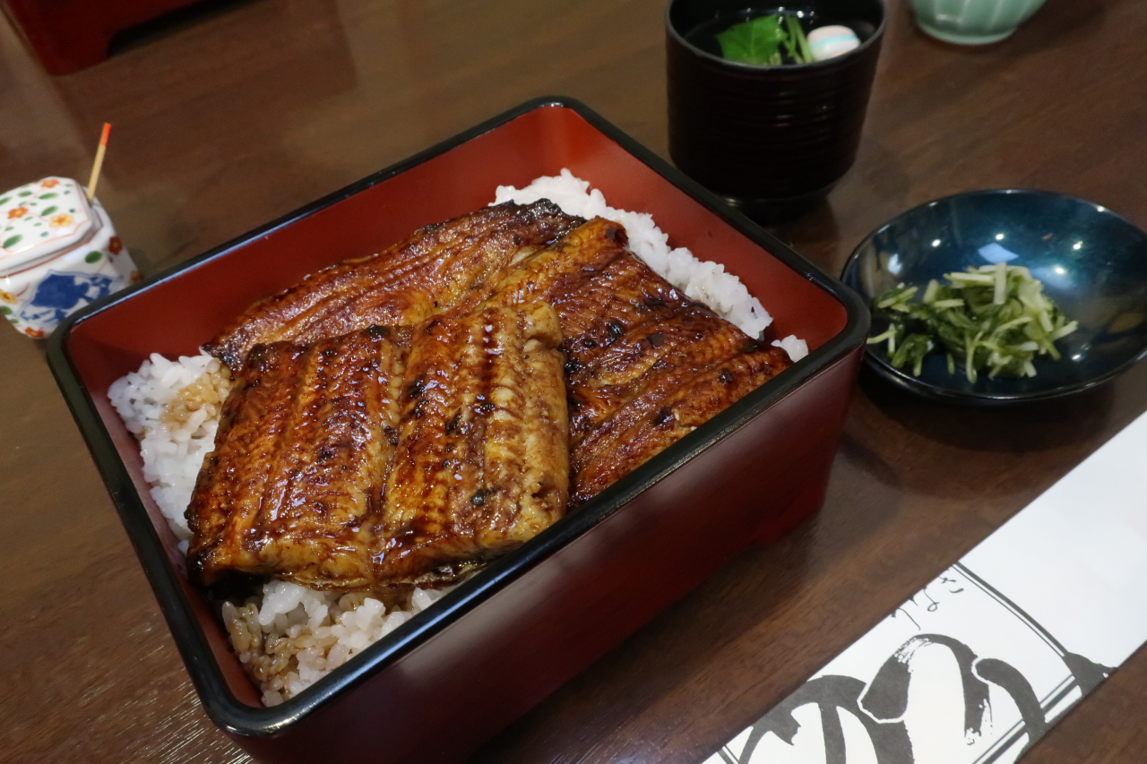 浜松旅行だけに当然のごとくウナギ店を厳選した。ここはそのうちの1店だ。店の入り口で炭を使って焼いているので、店内はいい香りであふれている。奥さんと二人で同じメニュー「うな重」(6,000円)を選んだ。ウナギを1匹使っている、ウナギ料理初心者にとっては豪華版だ。ウナギの関東風と関西風の境界線はここ浜松と言われているが、この店は関東風だ。とてもふっくらとしており、箸で軽々と切れる。が、とてもしっかりとした身なのでウナギをしっかりと堪能できる。ご飯一杯は無料でお代わり可能。うな重を選んだメリットだ。事前に予約の電話をかけた時、あらかじめオーダーしておいた方がいいとアドバイスされた。開店前から客が並んでおり、タイミングによってはせっかく予約したのにオーダーが前後して着丼するケースがあるとの気配りだ。