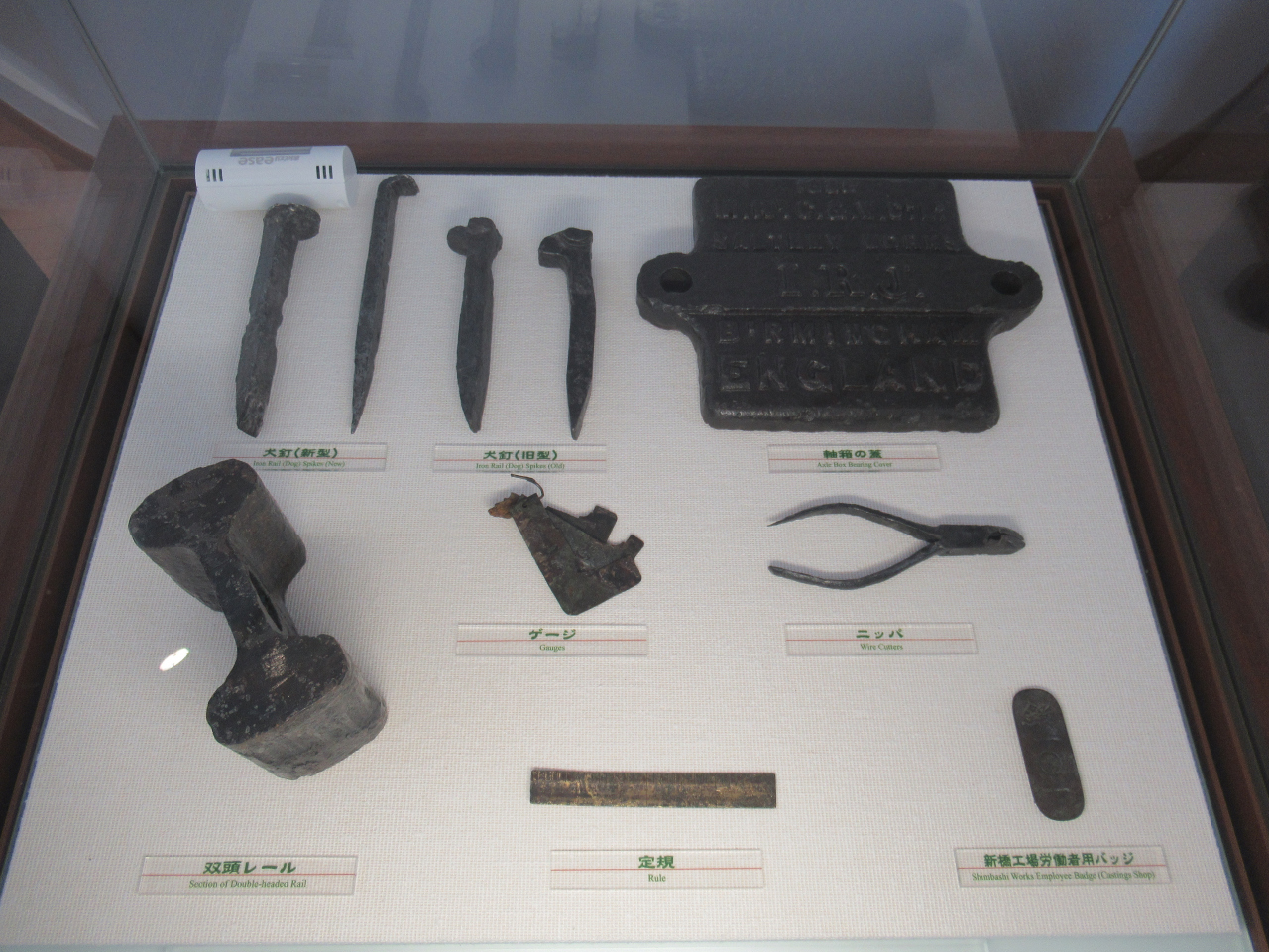 日本で初めて走った鉄道の新橋駅駅舎を再現した建物です。建物内には鉄道の歴史がわかる展示室や、特急列車の写真、駅舎の基礎石遺構、発掘で出土した改札鋏や犬釘、車両銘板、双頭レール、切符などを見ることができます。こじんまりした資料館ですが、鉄道ファンにとっては聖地といえる建物だと思います。訪れたときは1970年代から80年代にかけての特急列車の写真展が行われていました。